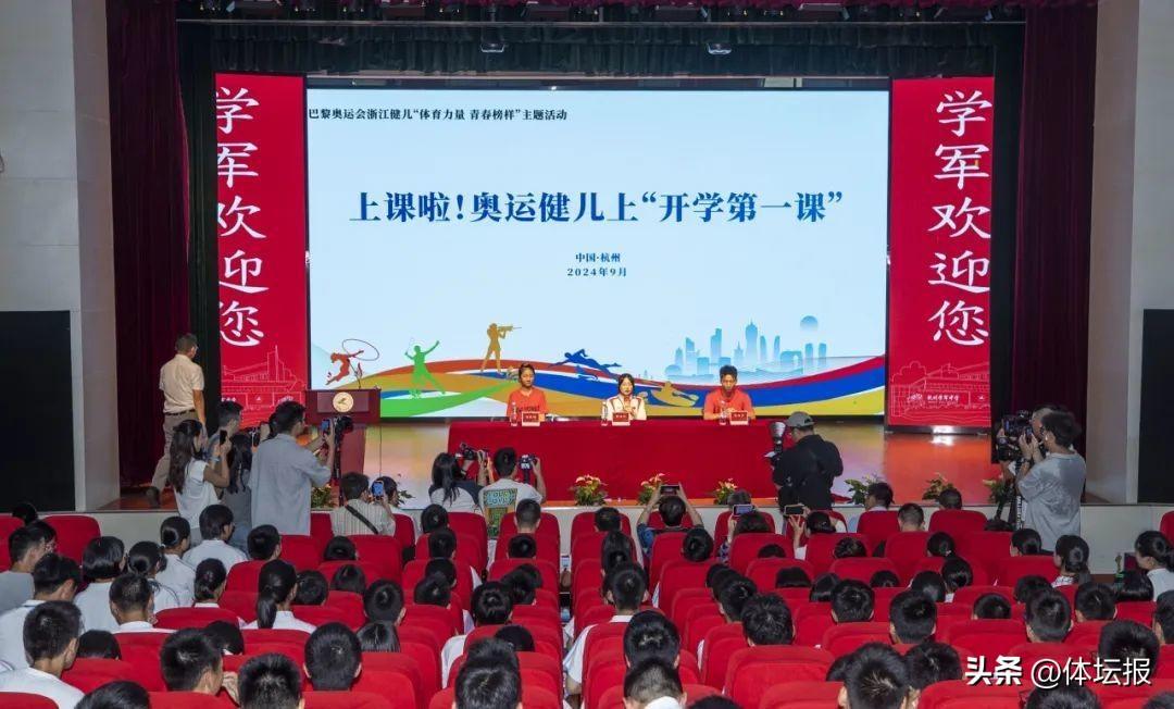 當天,奧運健兒們分批分次走進浙江大學、杭州學軍中學、杭州錢學森學校,通過與師生的互動交流、勵志報告、運動切磋等,展開熱烈互動、青春對話,在分享冠軍故事的同時,又傳遞體育的力量,奧運健兒上的“開學第一課”受到廣泛關注,無論走到哪裏都是人聲鼎沸。