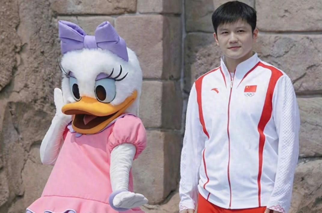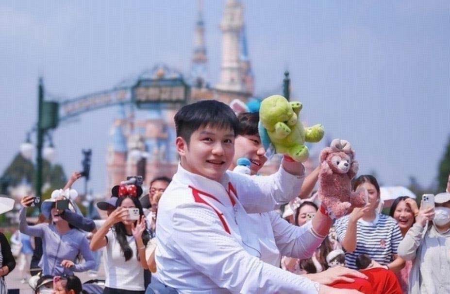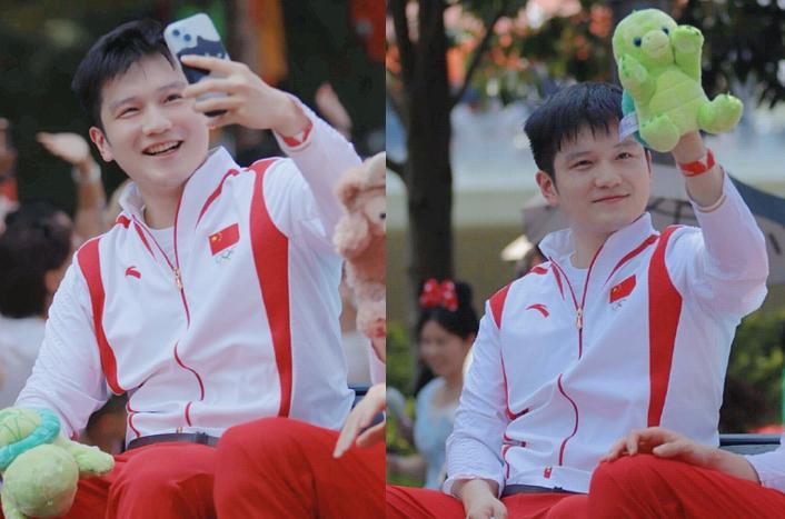 只見,樊振東穿着國家隊的禮服,與迪士尼卡通人物們同框互動,可愛擊掌,“小胖”瞬間童心氾濫,笑得非常開心,此外,樊振東還與覃海洋一起坐上了專屬巡遊花車,高調又華麗,他們不停向園區內的遊客們揮手致意,毫無架子。