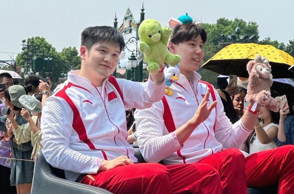 北京時間9月7日,上海迪士尼邀請了部分奧運健兒來到園區,在奇幻童話城堡舞臺與遊客、演職人員共同慶祝榮耀時刻。這次亮相的運動員,包括我們都很熟悉的乒乓球男單冠軍樊振東、以及游泳隊名將覃海洋,他們在米奇、達菲和其他知名IP卡通人物的帶領下,登上舞臺,接受大家的歡呼和祝賀,現場非常熱烈,歡呼聲不斷。