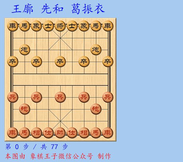 葛振衣前多次參加儀徵公開賽、霞浦中行杯、山水田園、臨港·南匯新城等,從未進過前50,王廓過宮炮對挺卒局,先手中盤失子,至末局,雙車雙兵仕相全對雙車馬卒單缺象,已敗定。