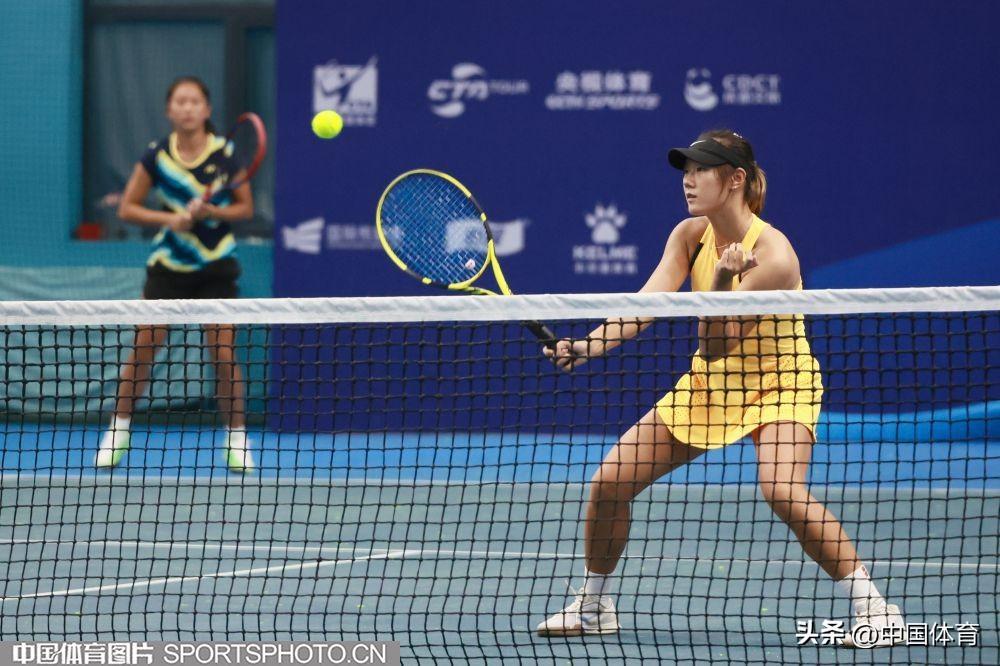 女雙冠軍艾煕兒、蔚海馨(右)在比賽中