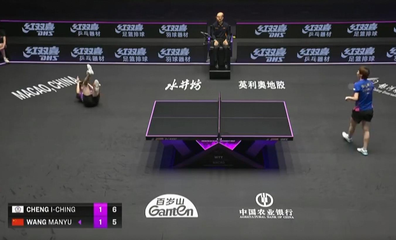 至關重要的第三局,鄭靜怡穩定了心態,開始跟王曼昱死磕前三板,場面頗爲膠着,兩人戰至3比3,進入中段之後鄭靜怡連贏2分6比5領先,王曼昱則不急不躁,減少失誤,甚至在一次相持球中把對手“打翻在地”,兩人再次平分9比9,非常激烈,又到了關鍵時刻,王曼昱頂住了,11比9再下一城,總比分2比1領先!