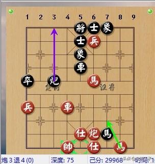 不料孟繁睿令人驚訝的長考過後,兵口送馬,不以爲逃,反投出了炮4進6對殺的兇悍一手,這招表面看,卡相眼,頗爲有勁。