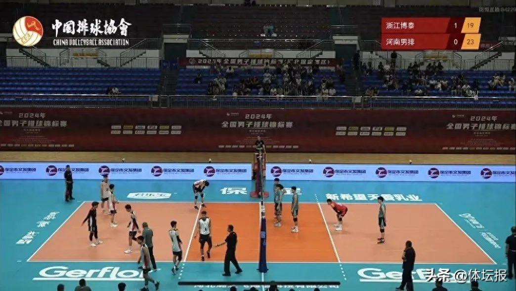 此役面對以“00後”爲班底的河南男排,浙江博泰男排開場後便多點開花,牢牢控制着場上局面,沒有給對手留下機會,以25比18輕鬆拿下首局。
