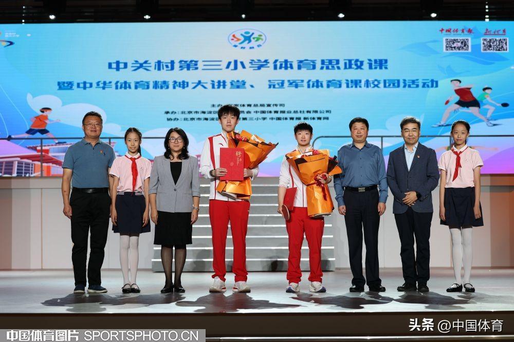 中國體育訊 9月23日上午,北京市海淀區中關村第三小學迎來了兩位特殊的“體育老師”——巴黎奧運會乒乓混雙冠軍王楚欽和孫穎莎。兩位冠軍與同學們分享成長故事、闡釋中華體育精神內涵,並與小選手切磋球技,爲該校師生帶來了一堂生動的“體育課”,還耐心地回答了同學們的提問。此次中關村第三小學體育思政大課暨中華體育精神大講堂、冠軍體育課校園活動由國家體育總局宣傳司主辦,北京市海淀區中關村第三小學和中國體育報業總社有限公司承辦。(中國體育圖片 白宇 攝)