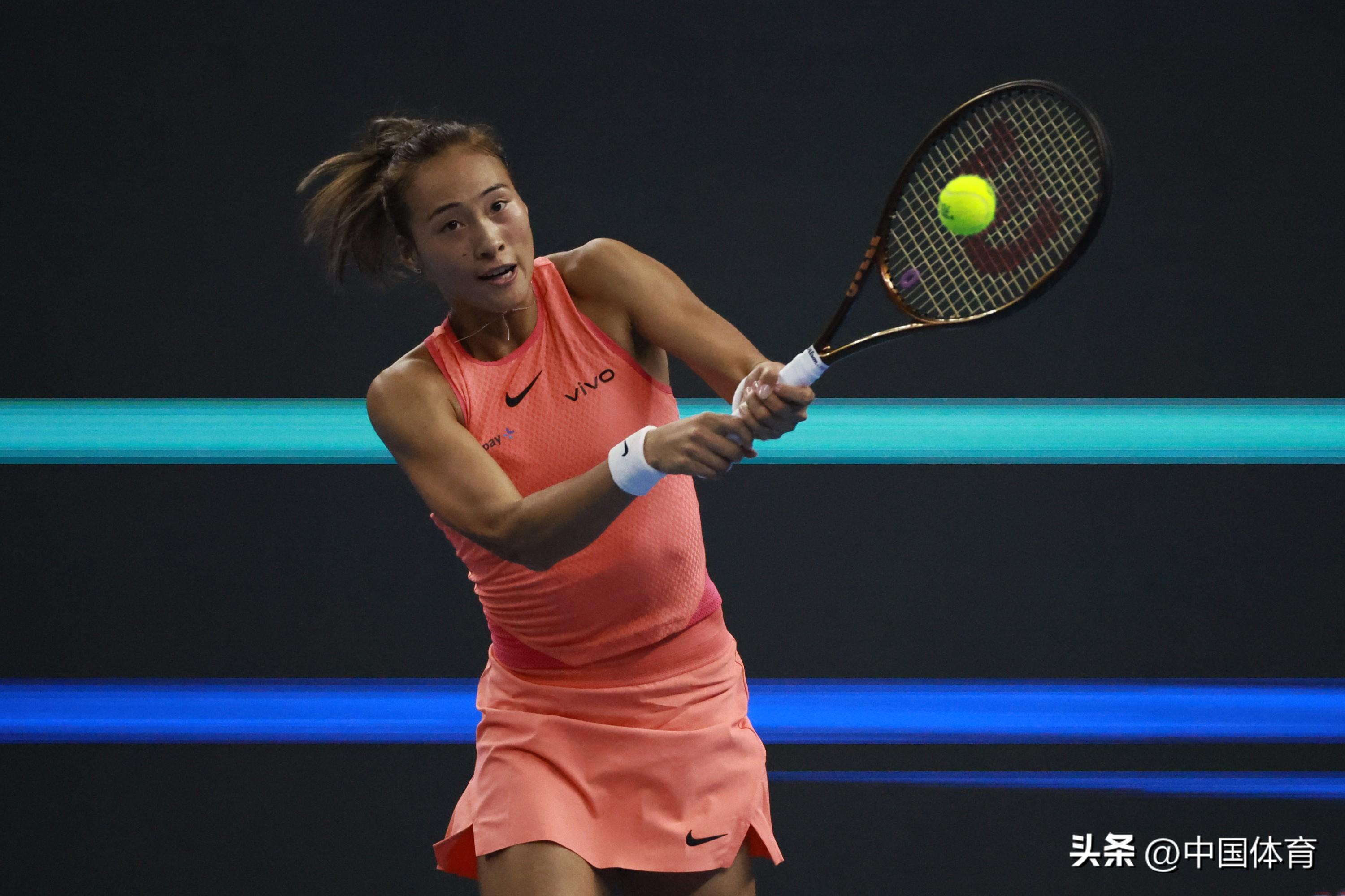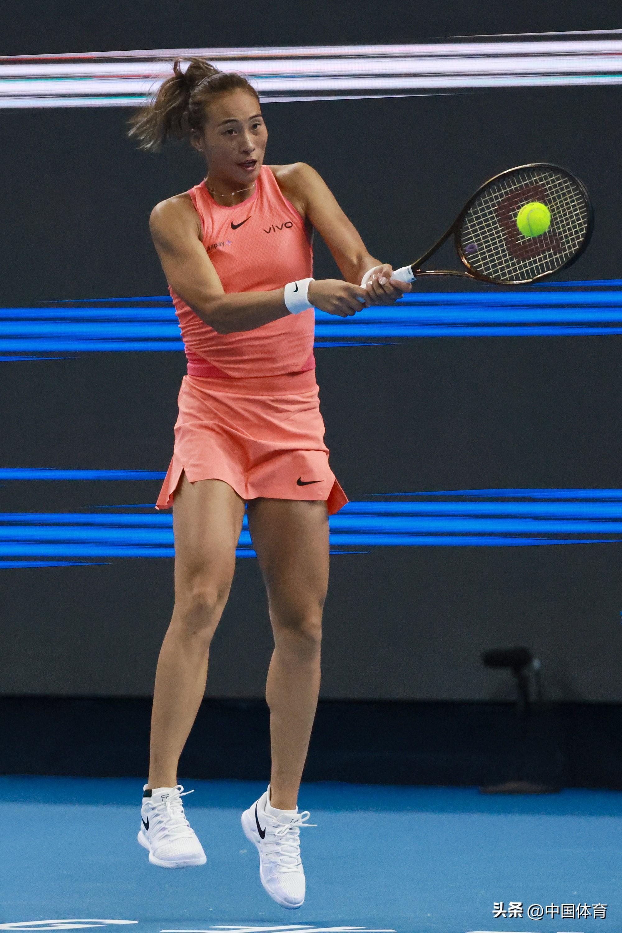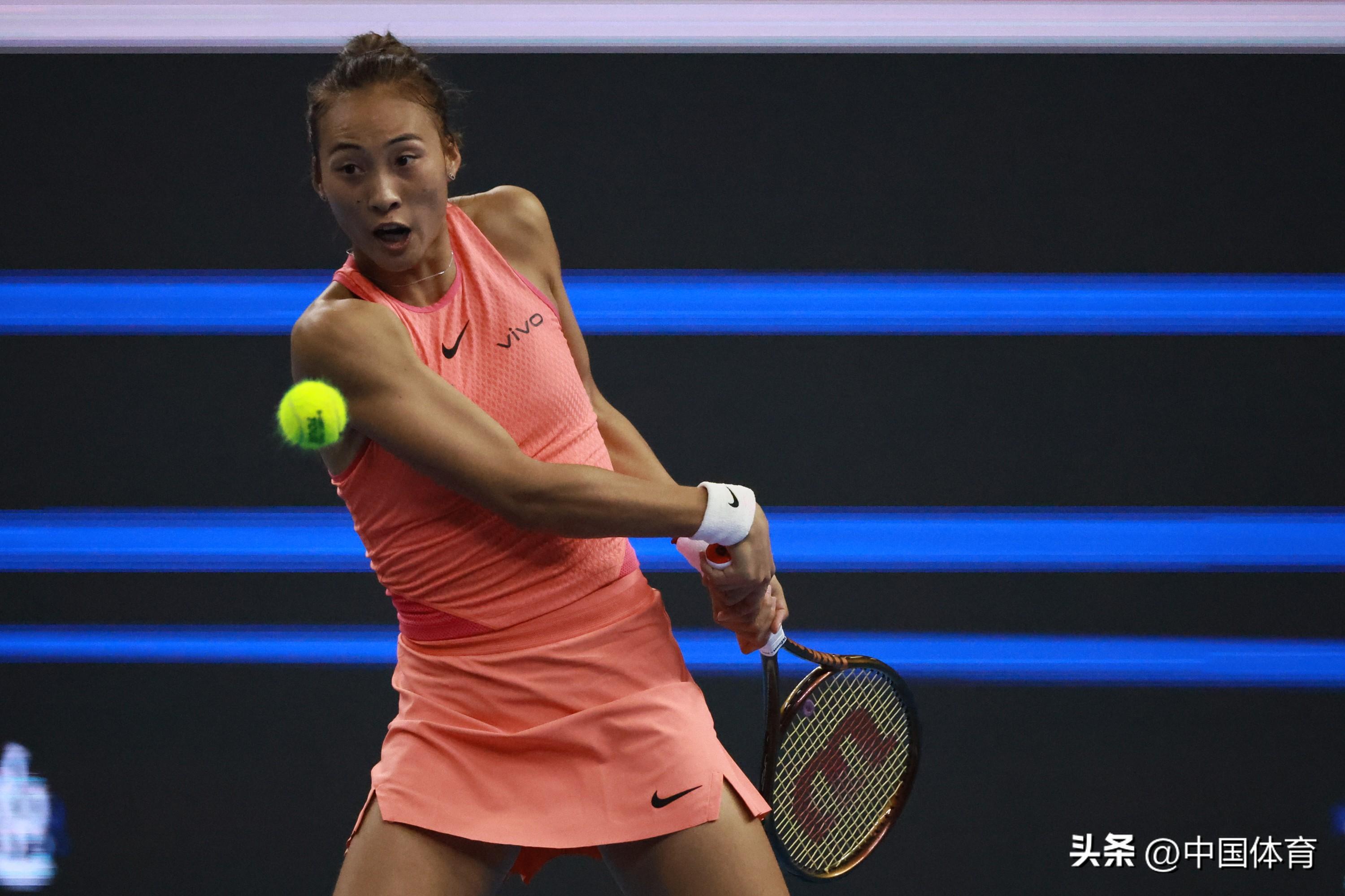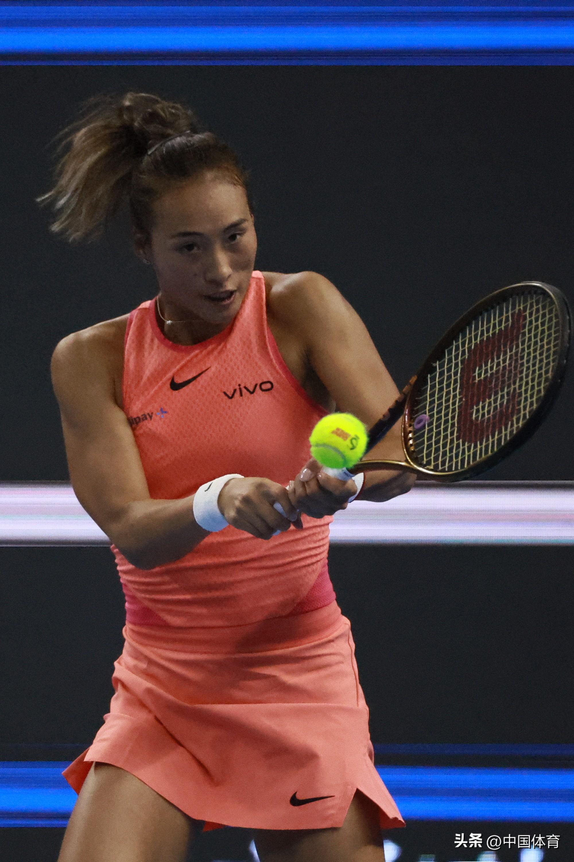 中國體育訊 9月28日晚,2024年中國網球公開賽女子單打第二輪比賽中,中國選手鄭欽文以2比0(6比1、6比1)完勝俄羅斯選手拉克西莫娃,晉級32強。本場比賽是鄭欽文在今年中網賽場的首秀,也是她在巴黎奧運會摘金後的本土賽事首秀。圖爲鄭欽文在比賽中。(中國體育圖片 鹿麟 攝)