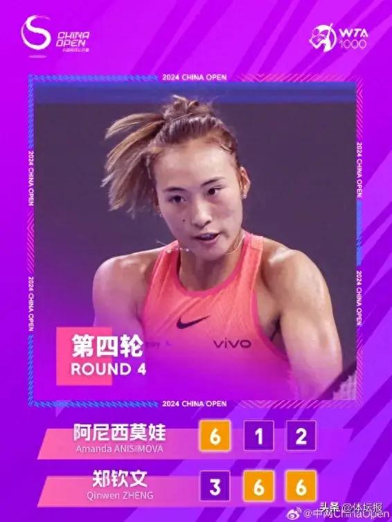 決勝盤,在兩人互破發球局後,率先穩住局勢的還是鄭欽文。而阿尼西莫娃越打越急躁,分差被逐漸拉開。最終鄭欽文贏得決勝盤,從而逆轉晉級。