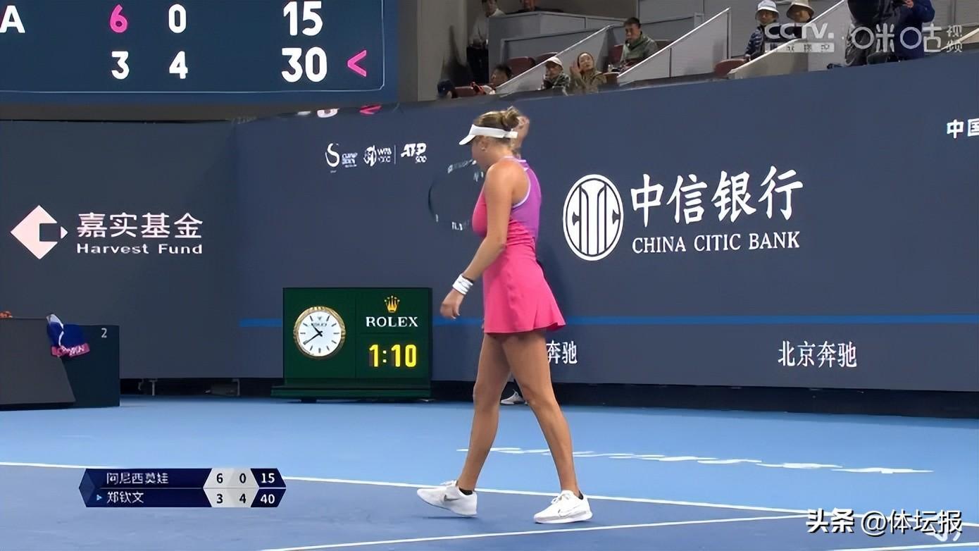 比賽首盤較量,兩人各自保發,比分來到3:3。隨後鄭欽文的發球表現不太理想,一發成功率不高。憑藉盤末階段的關鍵破發,阿尼西莫娃以6:3先下一城。