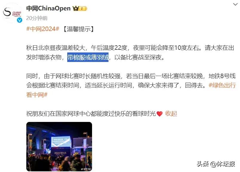 對於依舊全場爆滿、熱情吶喊的觀衆,鄭欽文現場致謝球迷:“今晚北京很冷,這麼晚你們還在,謝謝一直支持我的觀衆。”