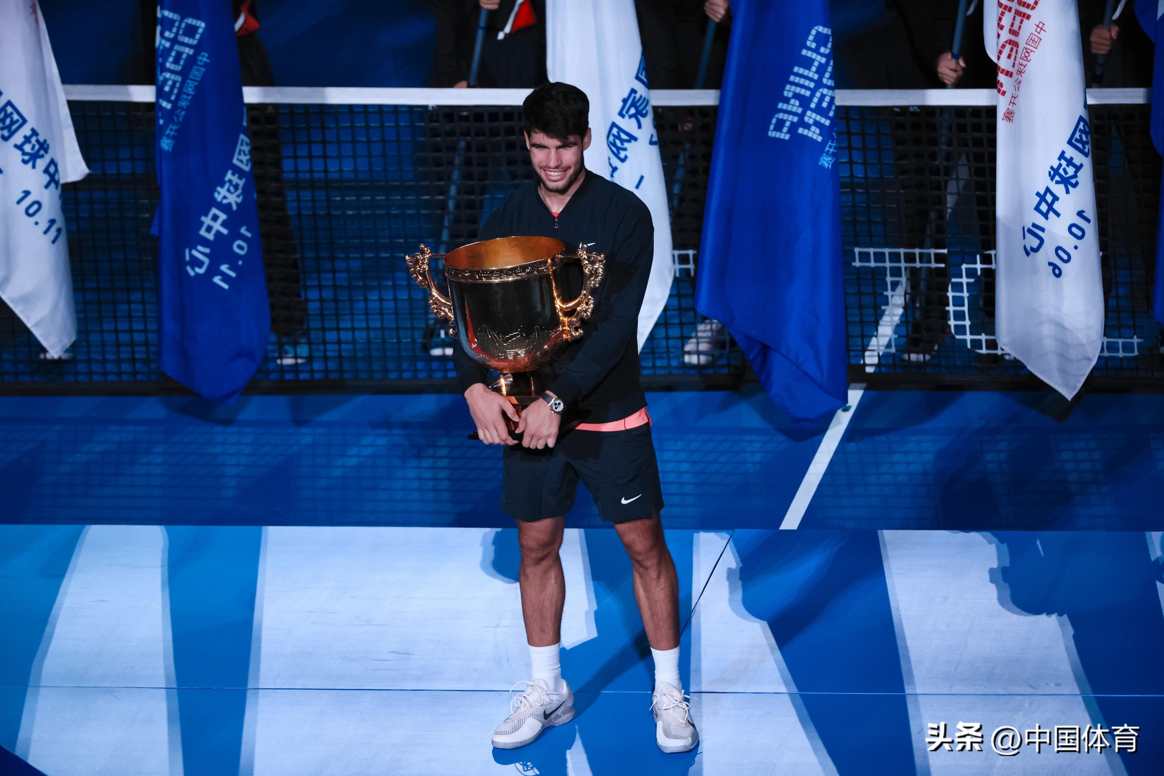 中國體育訊 10月2日晚,2024年中國網球公開賽男單決賽在國家網球中心如期上演。由21歲西班牙小將阿爾卡拉茲對戰衛冕冠軍辛納。雙方苦戰三盤,最終阿爾卡拉茲在先輸一盤的情況下,連扳兩盤,以大比分2比1擊敗對手,成爲自2006年21歲的巴格達蒂斯以來最年輕的北京站冠軍。(中國體育圖片 鹿麟 攝)