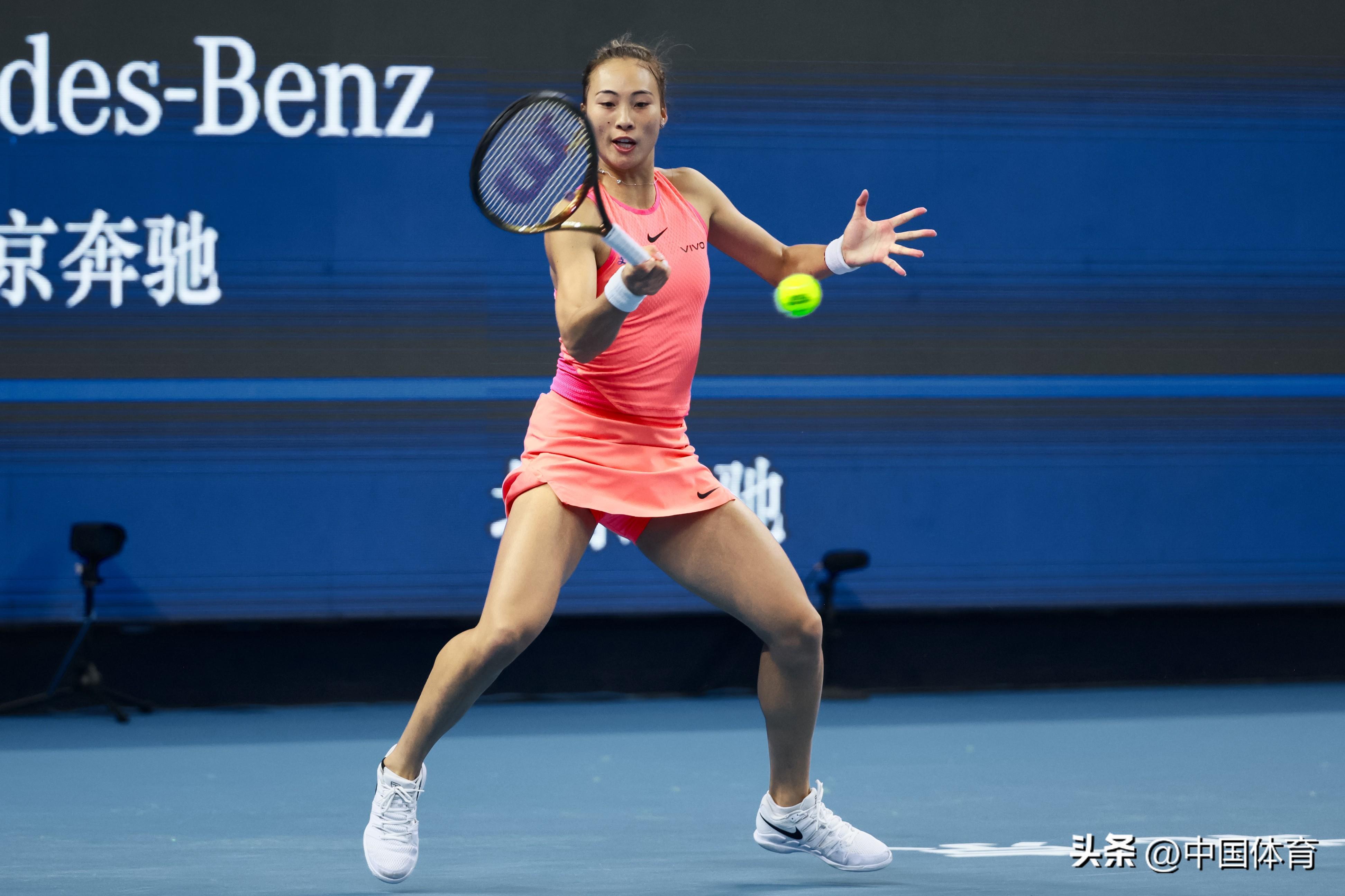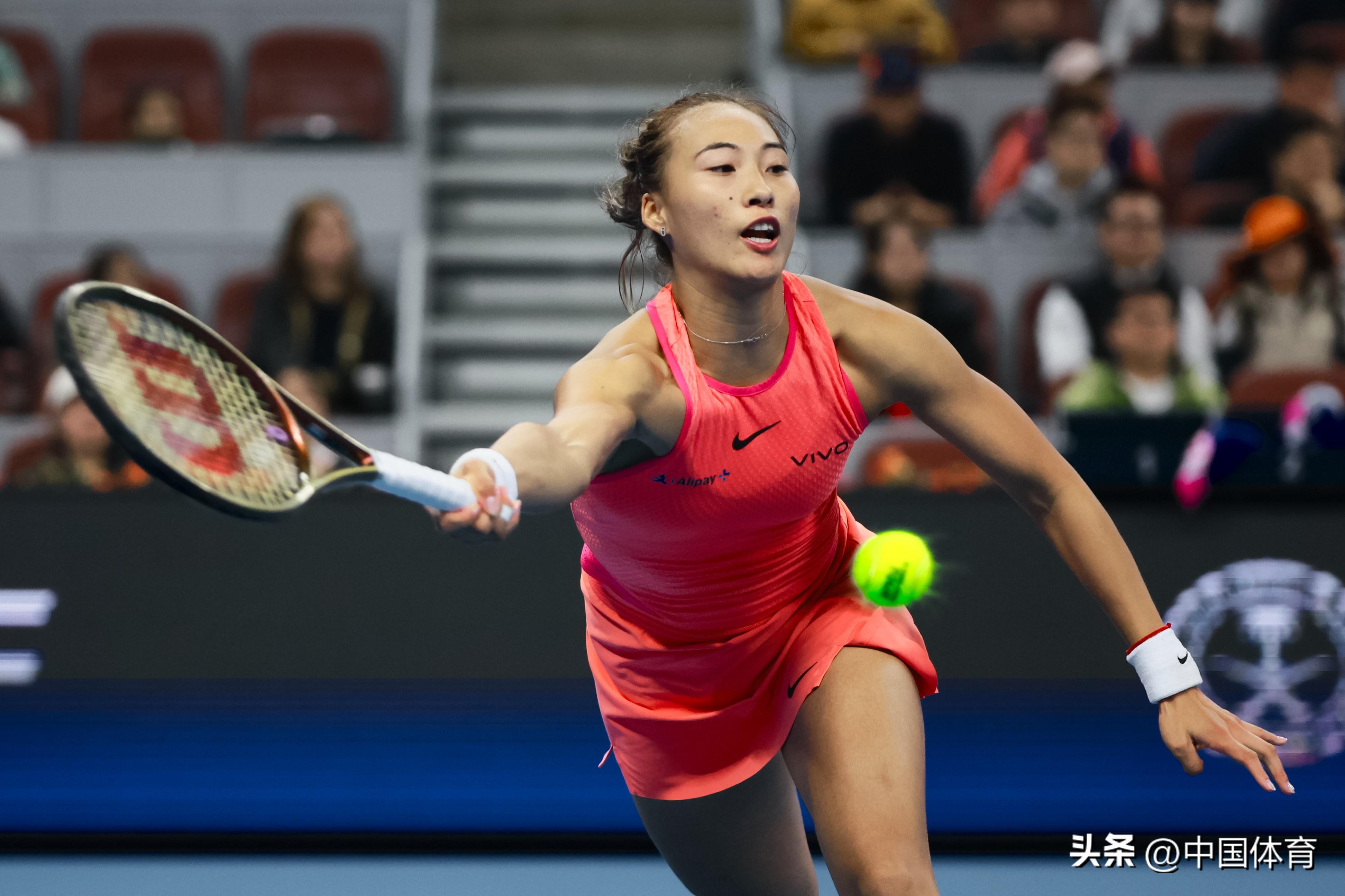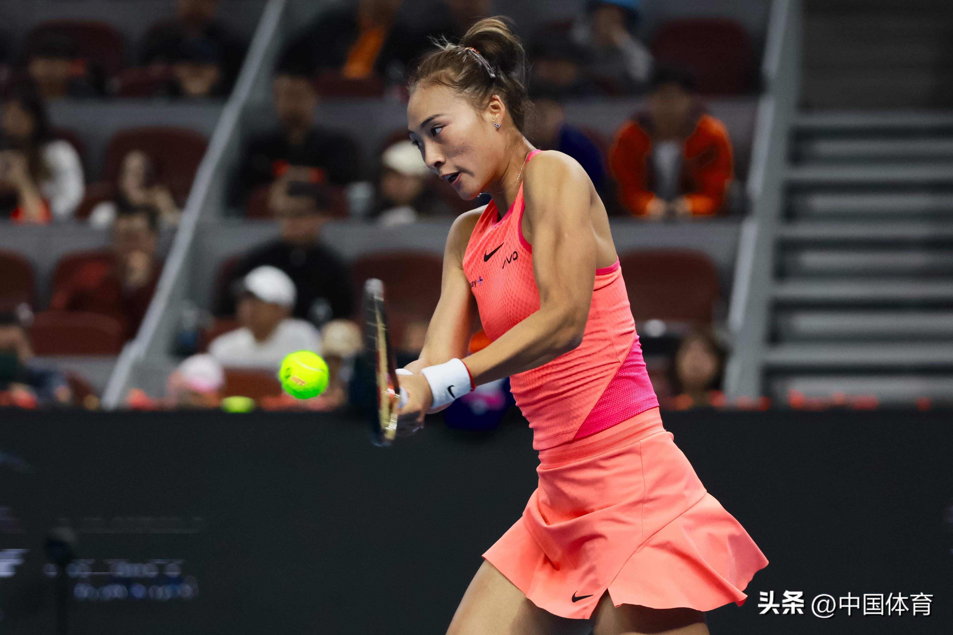 中國體育訊 10月4日晚,2024年中國網球公開賽資格賽在國家網球中心繼續進行。女單1/4決賽中,5號種子、中國名將鄭欽文再次上演逆轉好戲,以2比1(5比7、6比0、6比4)戰勝17號種子米拉·安德列娃,首次闖進中網女單四強。這也是她首次打進1000級別賽事四強。圖爲鄭欽文在比賽中。(中國體育圖片 鹿麟 攝)