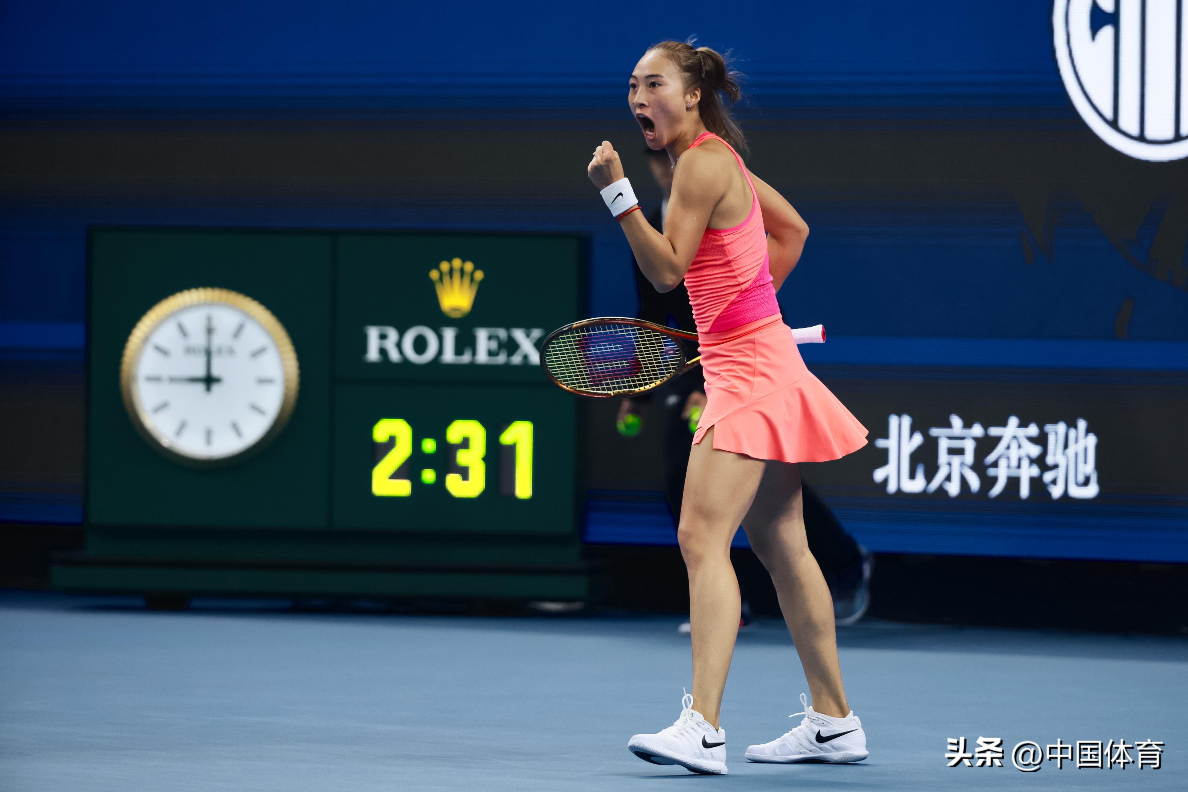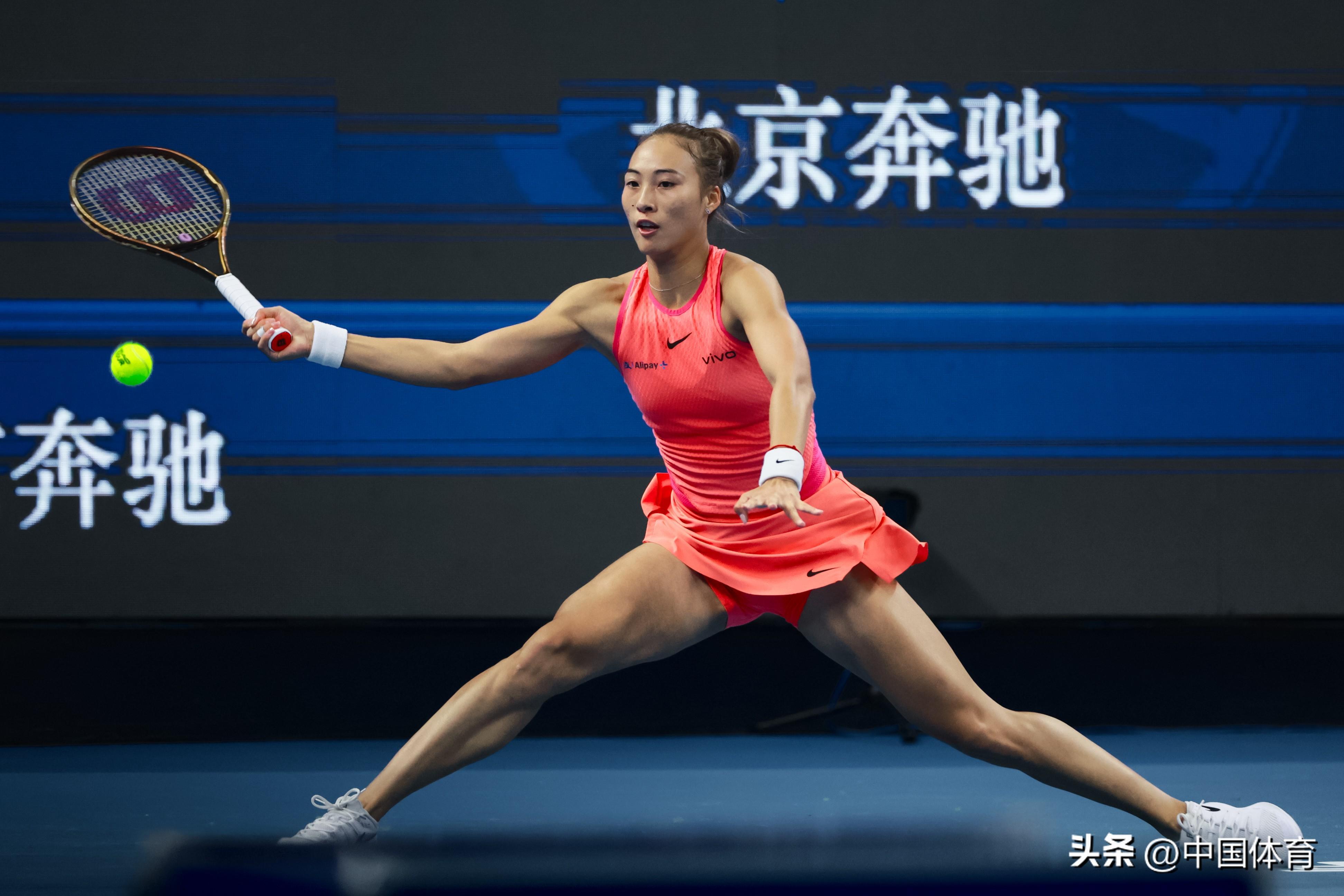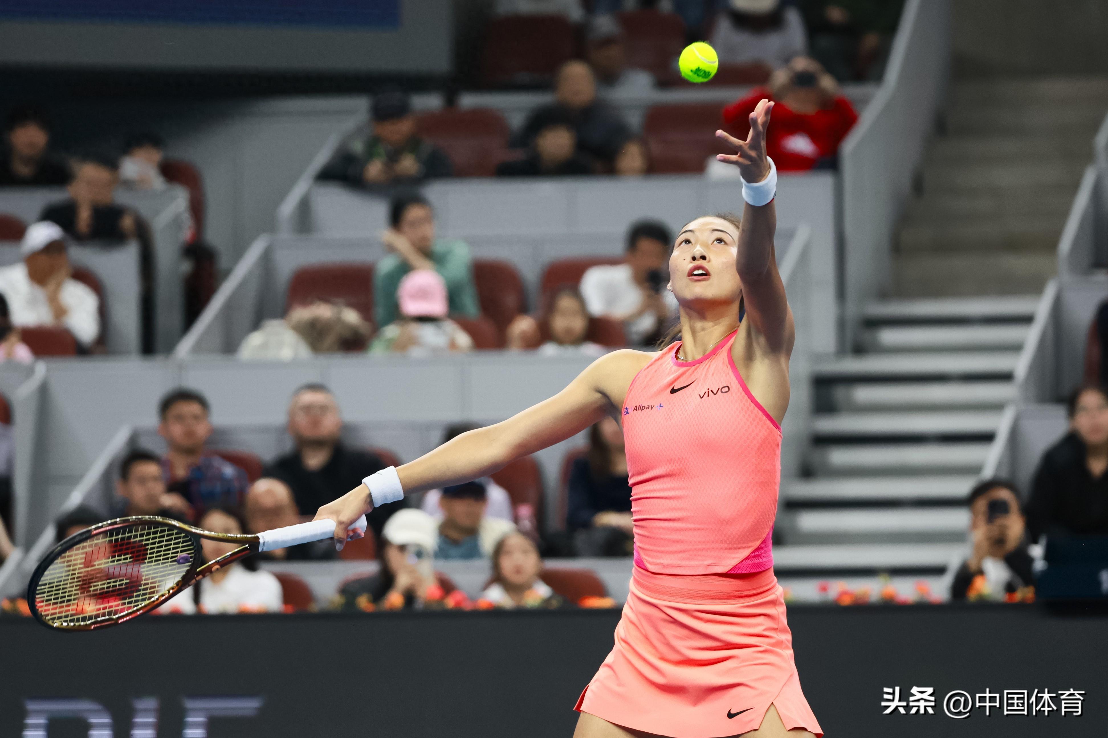 中國體育訊 10月4日晚,2024年中國網球公開賽資格賽在國家網球中心繼續進行。女單1/4決賽中,5號種子、中國名將鄭欽文再次上演逆轉好戲,以2比1(5比7、6比0、6比4)戰勝17號種子米拉·安德列娃,首次闖進中網女單四強。這也是她首次打進1000級別賽事四強。圖爲鄭欽文在比賽中。(中國體育圖片 鹿麟 攝)