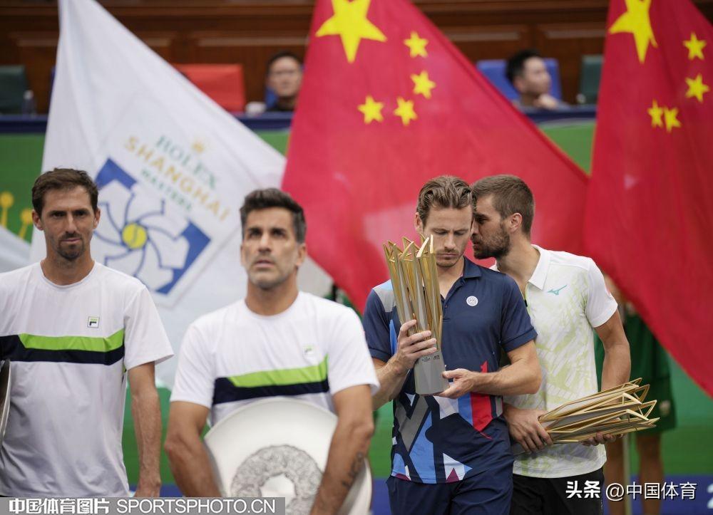 中國體育訊 10月13日下午,在上海久事旗忠網球中心進行的2024ATP上海網球大師賽決出男雙項目桂冠。荷蘭選手庫爾霍夫和克羅地亞選手麥克蒂奇的跨國搭檔以2比0擊敗阿根廷組合岡薩雷斯/莫爾泰尼獲得冠軍。這也是庫爾霍夫/麥克蒂奇組合首次獲得上海大師賽男雙冠軍。(中國體育圖片 魏徵 攝)