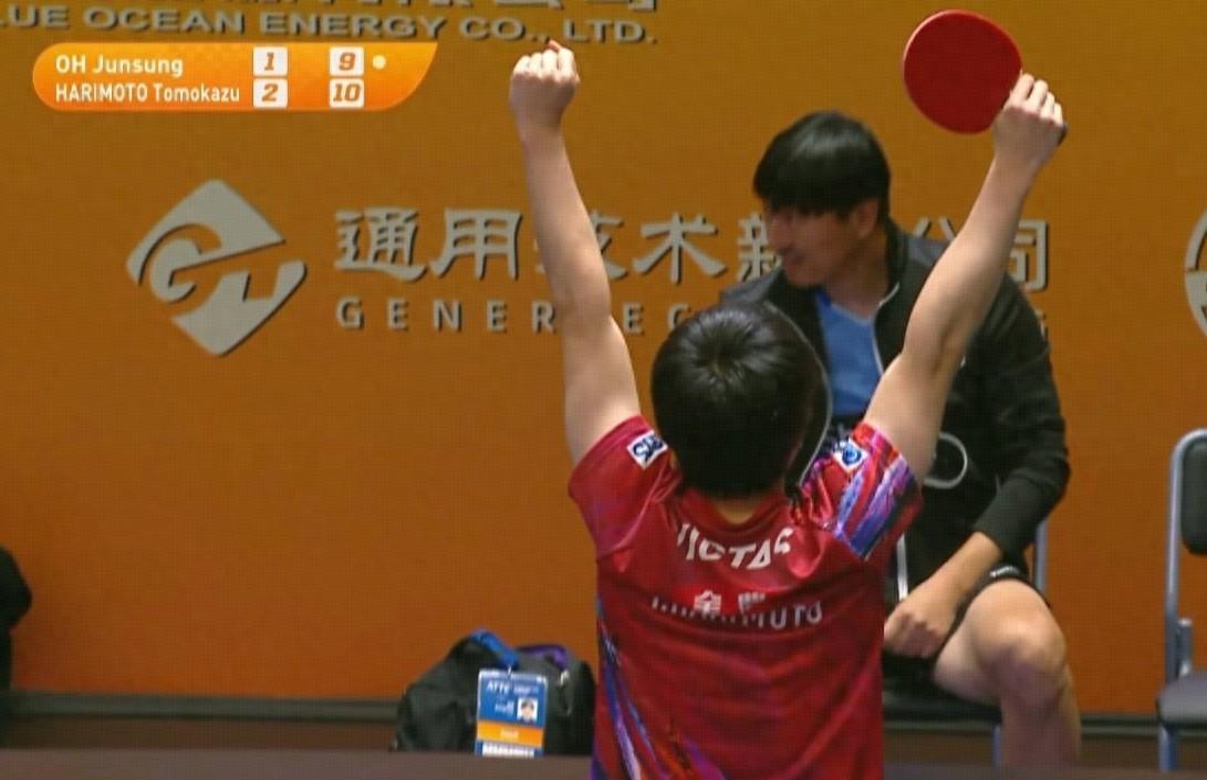 第四局比賽,張本智和一開始保持領先,確立2到3分的優勢,不過進入中段之後,退無可退的吳晙誠開始奮力追分,兩人一度戰至8平,不過張本智和在關鍵分的更加自信,更有經驗,有驚無險11比9,日本人再勝一局,總比分3比1擊敗了黑馬吳晙誠。