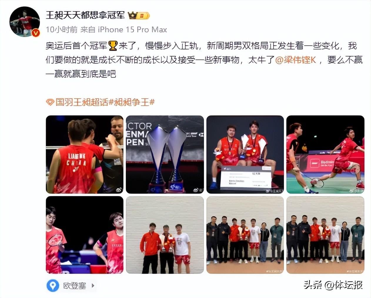 “奧運後首個冠軍來了,慢慢步入正軌,新週期男雙格局正發生着一些變化,我們要做的就是不斷地成長,以及接受一些新事物,太牛了@梁偉鏗K ,要麼不贏,一贏就贏到底是吧。”