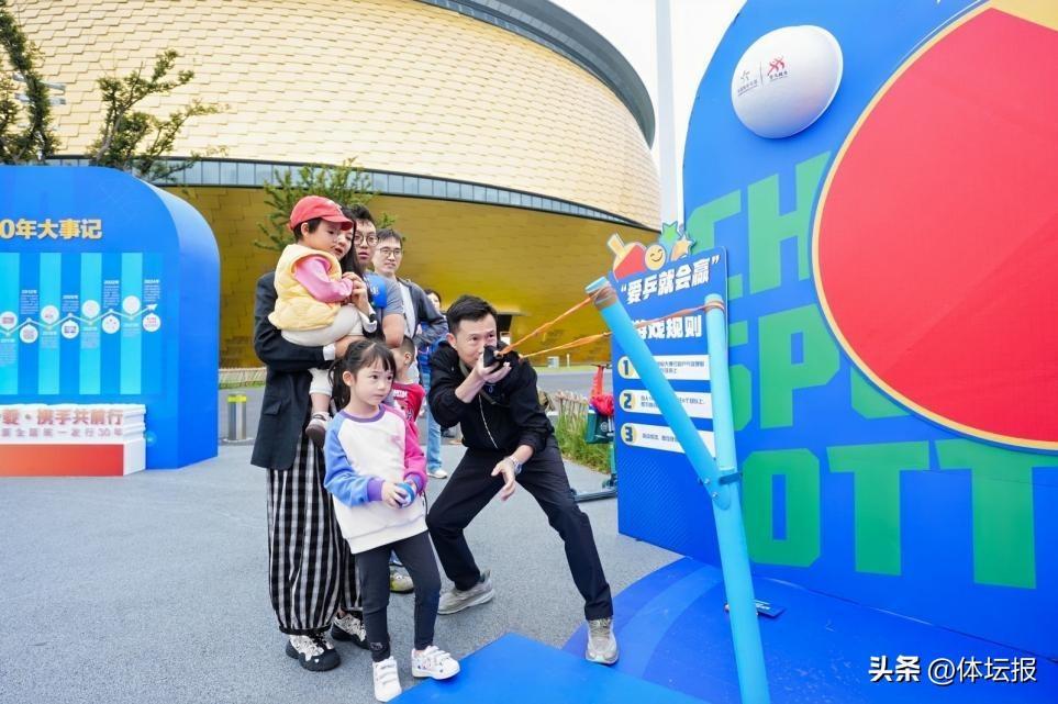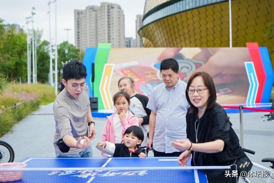 作爲全民健身季活動,現場精心佈置了3處趣味運動,分別爲巨型乒乓球“一擊即中”挑戰、大型彈弓“愛乒纔會贏”以及最受歡迎的瘋狂乒乓大PK。現場,三位杭州體彩公益代言人與市民一同遊園互動,宋時超還坐鎮球桌接受國球挑戰,讓參與市民直呼過癮。