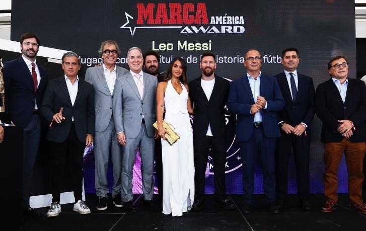 近日,《馬卡報》爲阿根廷巨星梅西頒發了特別獎項,祝賀他收穫職業生涯第46座冠軍獎盃,並且邀請梅西和他的家人們一起來到西班牙,安東內拉帶着三個兒子亮相,這位昔日西甲花魁,依然美麗大方,身材婀娜,在頒獎儀式上,安妞穿了一件白色的深V高叉禮服長裙,優雅迷人,坐在丈夫梅西身旁,顯得特別端莊!
