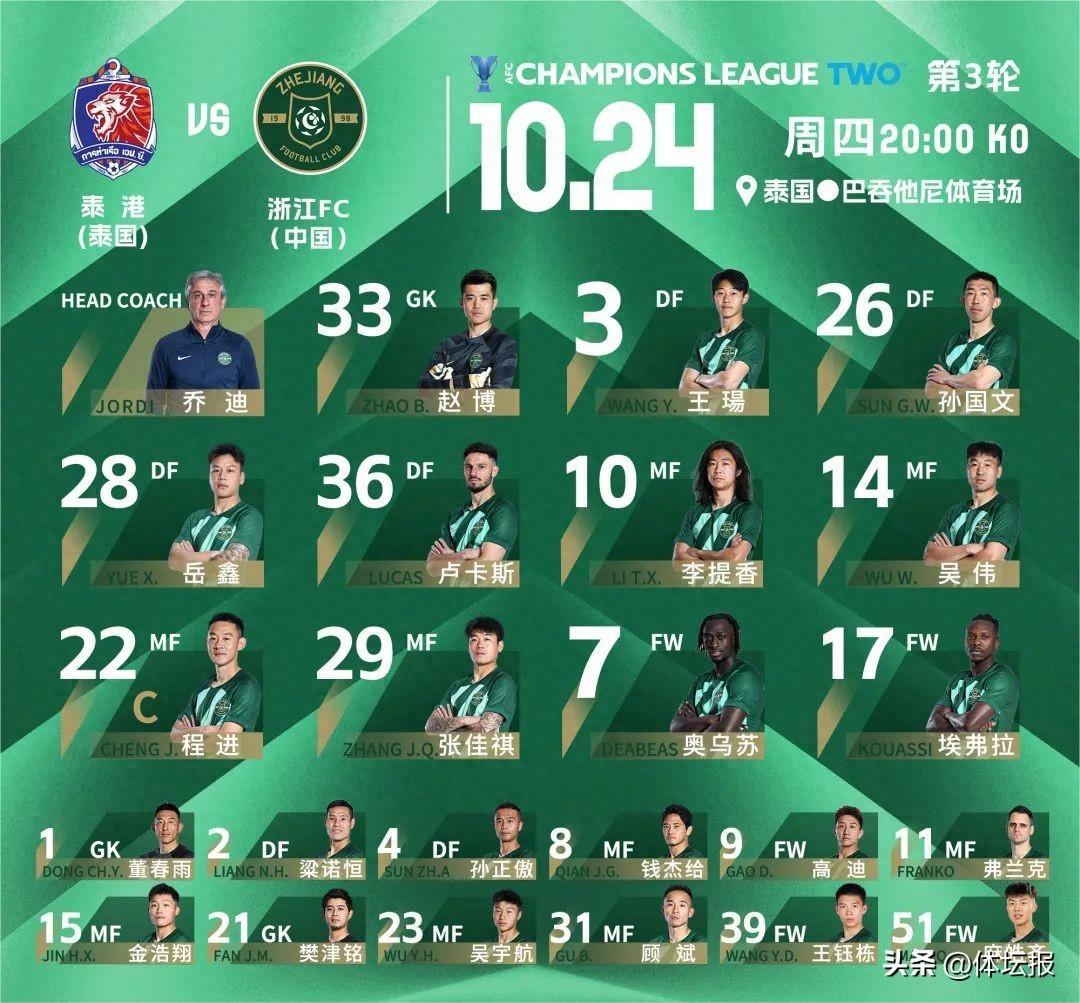 10月24日,亞冠二級聯賽小組賽進入第三輪的積分爭奪。本輪比賽,浙江隊遠赴泰國,與曾在上賽季亞冠附加賽中交手過的老對手泰國泰港展開對陣。最終,浙江隊以0-1不敵對手,未能將三分收入囊中。