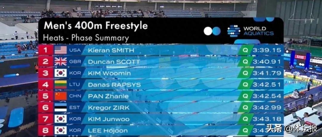 在上午的男子400米自由泳預賽中,潘展樂在第二組5道出場,以3:42.54的成績預賽排名第五晉級今晚400自決賽。之後的比賽中,潘展樂還將參加100米自由泳和200米自由泳兩項角逐。