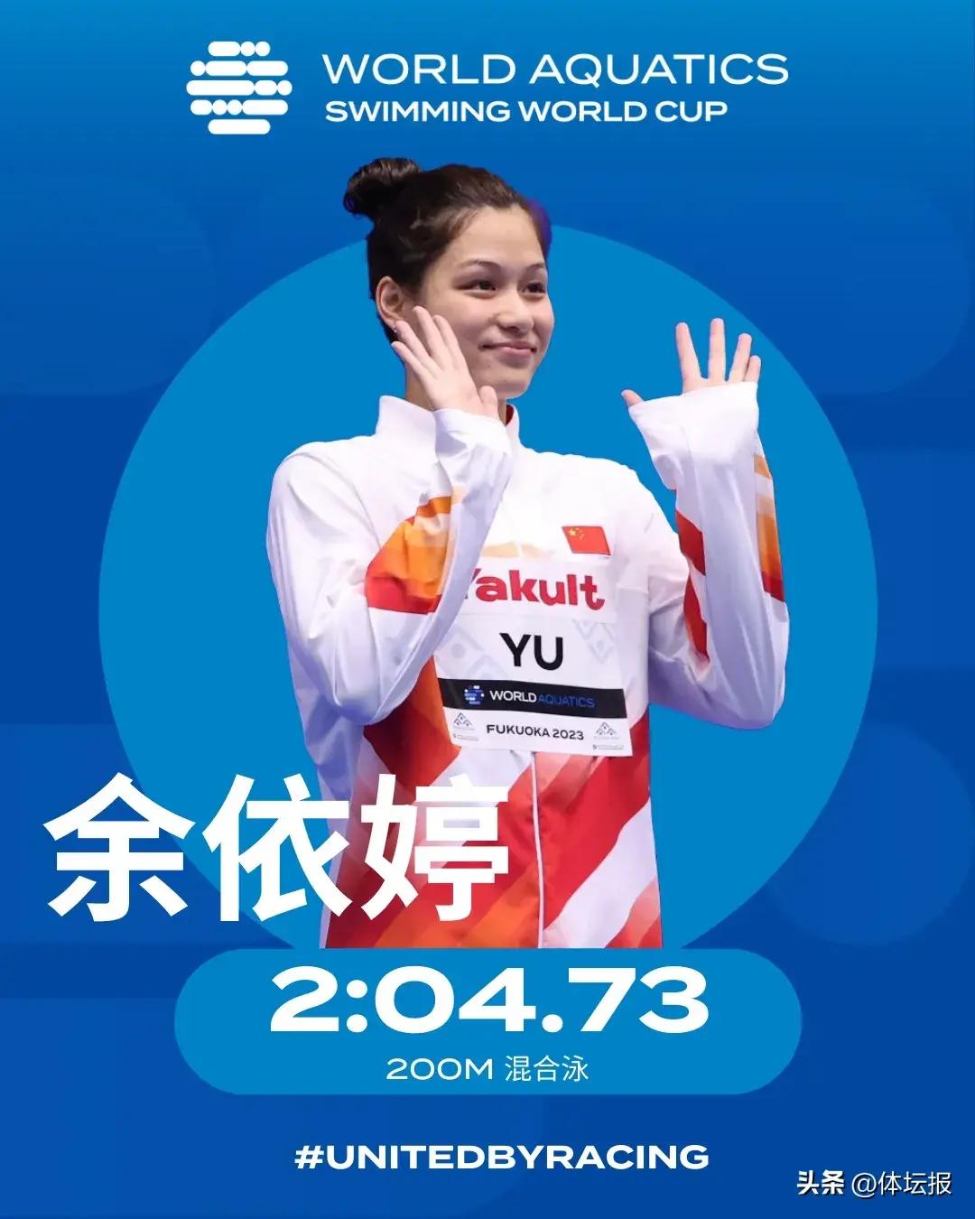 在壓軸項目女子200米混合泳決賽中,餘依婷奪得金牌。一小時內連奪女子100米蝶泳銅牌和200米混合泳金牌。此前,餘依婷在女子100米混合泳、女子400米混合泳比賽中都摘得銀牌,完美下班!