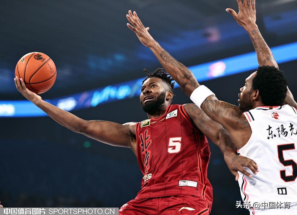 廣東東陽光隊貝茲利籃下封蓋北京北汽隊所羅門(右)