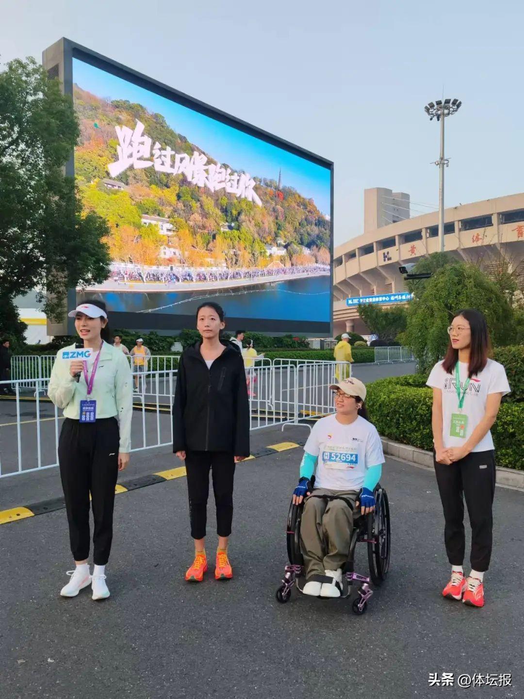 徐藝銘在杭馬起點處的預熱活動閃亮登場——她就是前段時間衝上熱搜的#杭州95後銀行職員請假參加巴黎奧運會#的主人公,在參加巴黎奧運會大衆組馬拉松歸來後,受聘正式成爲了杭馬的宣傳大使,在本次杭馬中參加半程馬拉松。