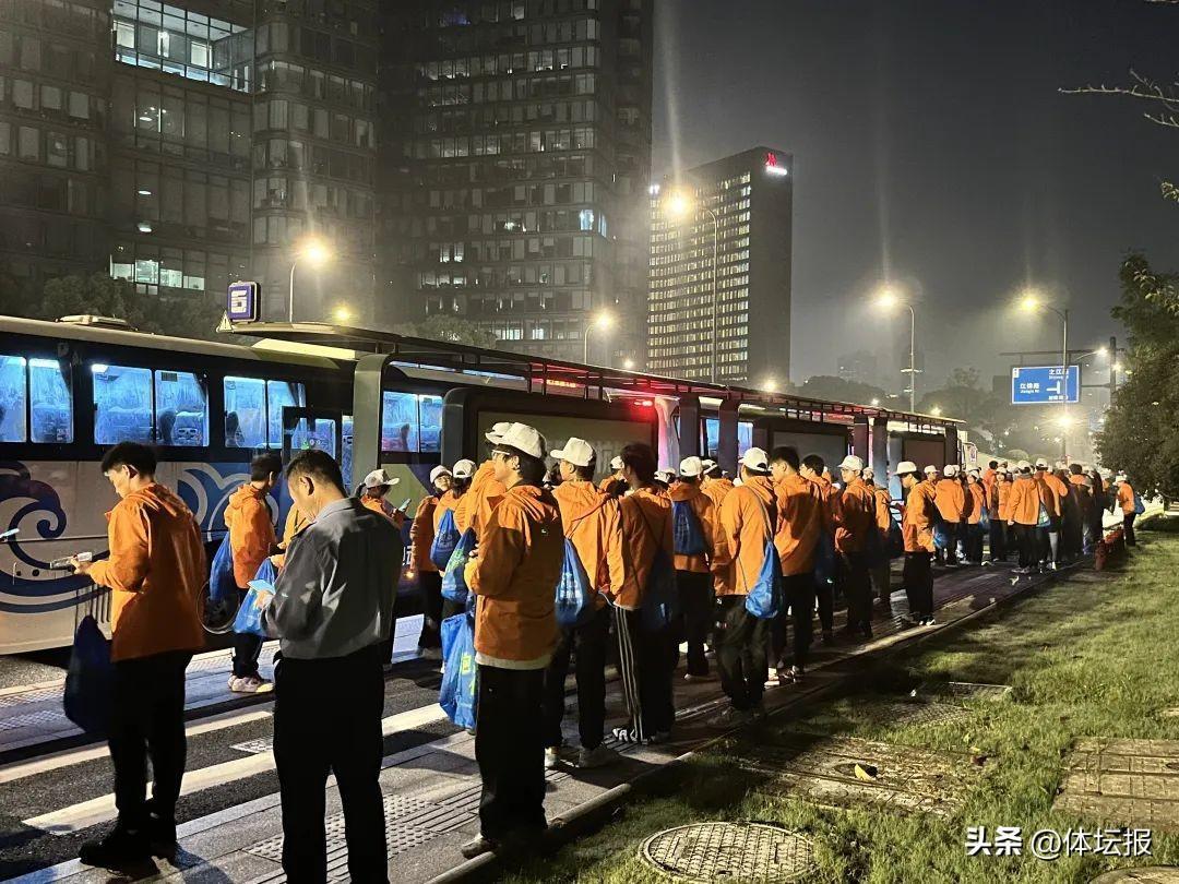 一大批大學生志願者已乘坐大巴來到現場。“同學們,早餐喫了沒?沒喫的現在喫啊,沒關係的。”共青團杭州市委杭馬志願者領隊顧雅娟在現場整隊,她介紹,這次是共青團杭州市委首次招募大學生志願者參與杭馬,共青團杭州市委承擔了杭馬近2100名大學生志願者的招募,全城高校熱情參與,志願者來自浙江工業大學(屏峯校區)、浙江工商大學、杭州職業技術學院、杭州電子科技大學、浙江財經大學等高校。
