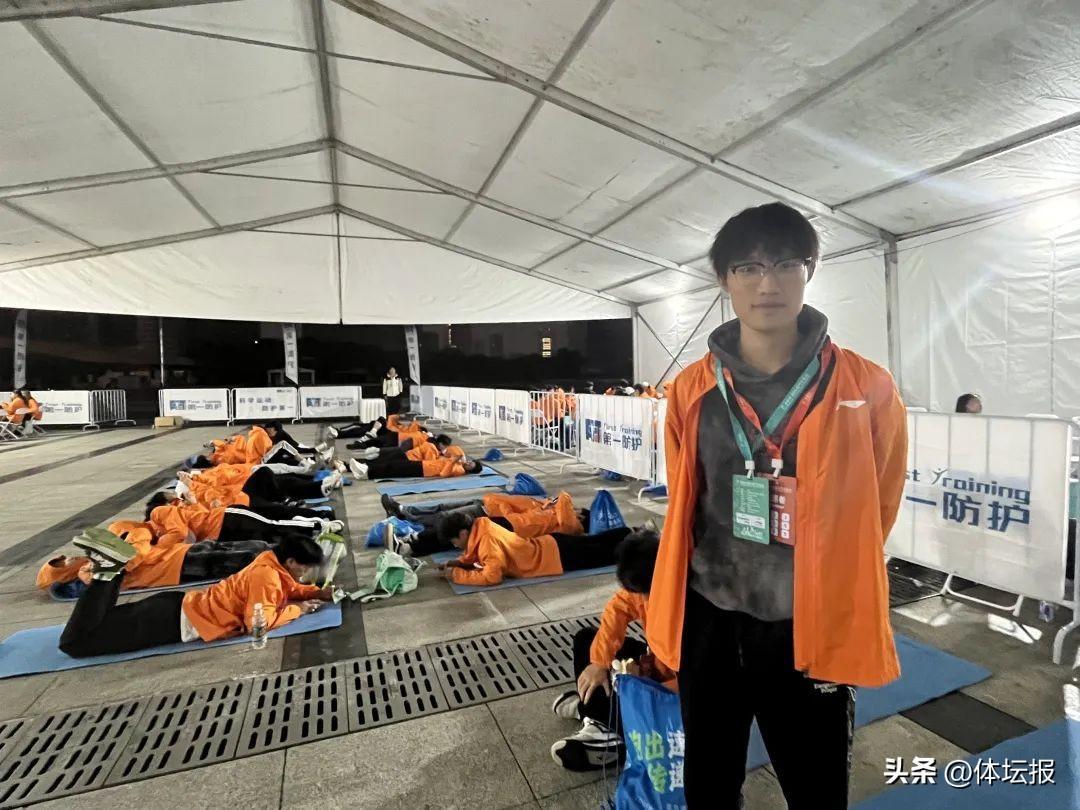 王軼康表示,今年已經是他第三年參加杭州馬拉松的志願者了,所以當上了“負責人”,杭馬是杭州的大賽,能參與這樣的大賽很開心,希望發揮自己的體育專長服務大家,他每年志願服務的工作崗位都不同,今年是首次參加拉伸引導的服務,對他來說也是一種新體驗。
