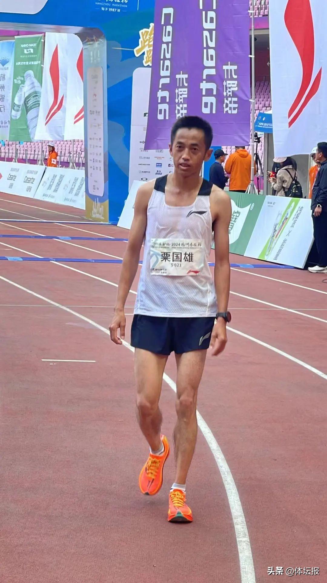 全馬第一位抵達的中國選手是粟國雄,他是馬拉松著名選手,1992年5月26日出生於雲南普洱,曾在多屆杭馬比賽中獲得冠軍。