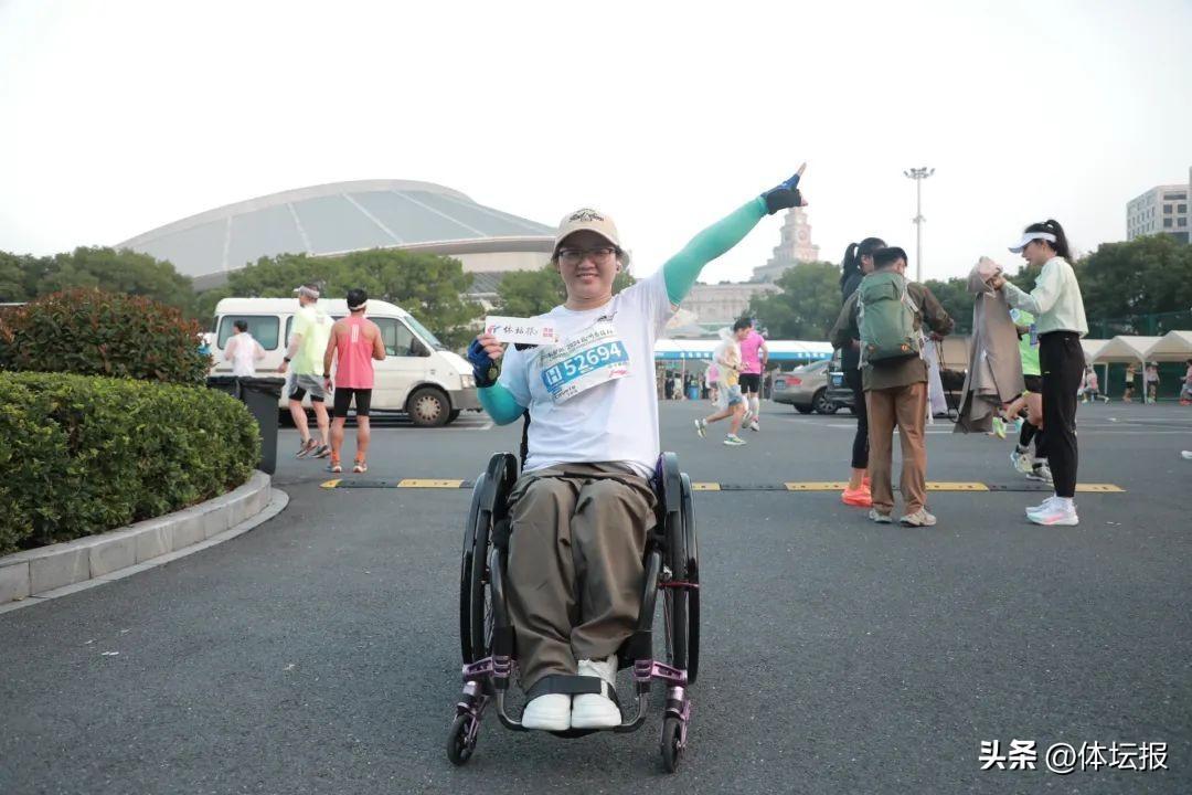 另一邊,一位名叫葉百麗的特殊跑友,吸引了記者的目光。與普通參賽者不同的是,“跑者”葉百麗有專屬“座駕”,而她需要憑藉雙手發力,才能實現從容前行。“2019年,我一腔熱血,獨自馳騁半馬。這一次,我帶着朋友們一起來的!”