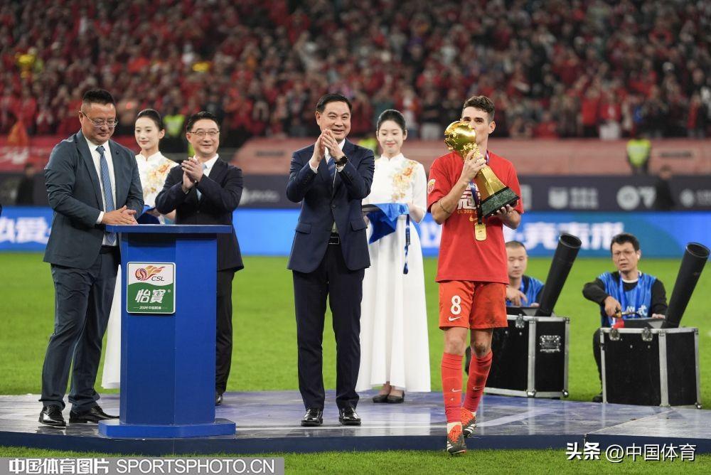 國家體育總局副局長、足協黨委書記張家勝將獎盃頒給奧斯卡