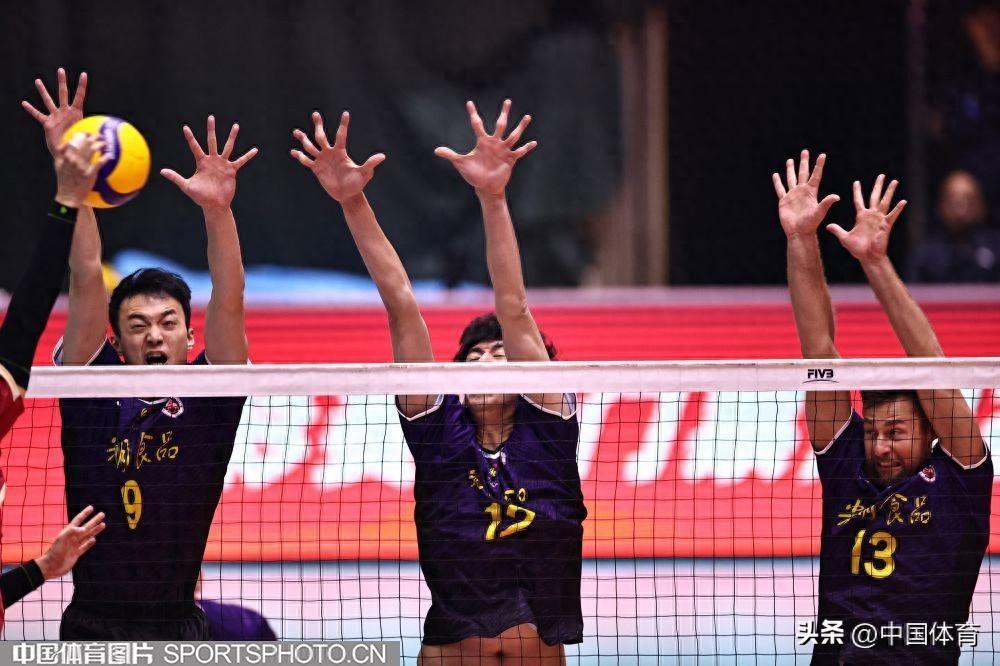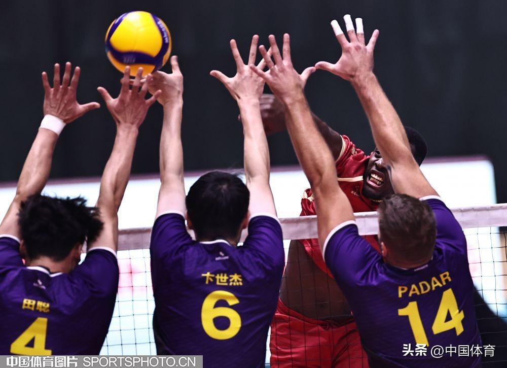 上海光明隊(左起)郭成、張哲嘉、庫比亞克三人攔網