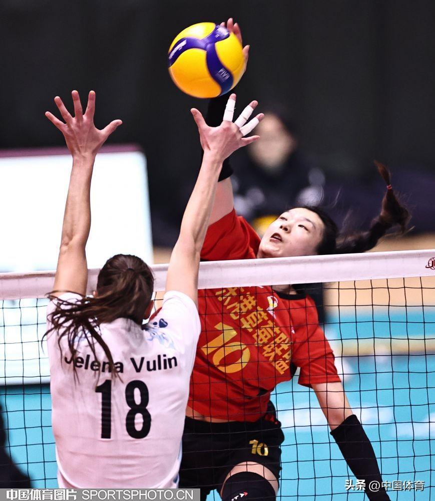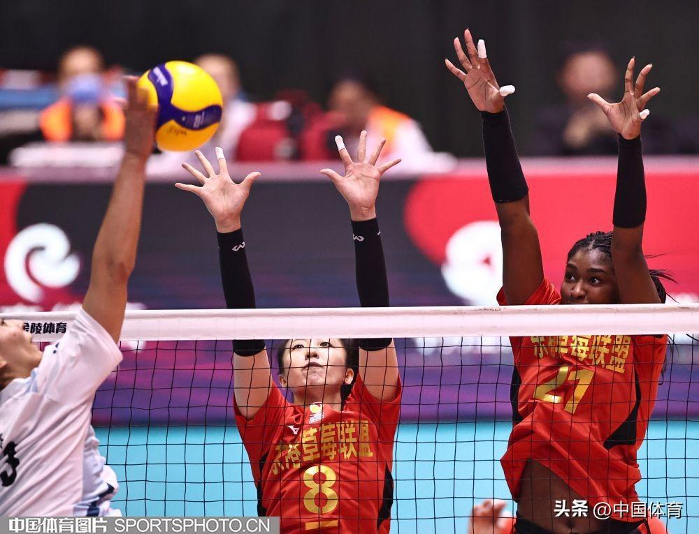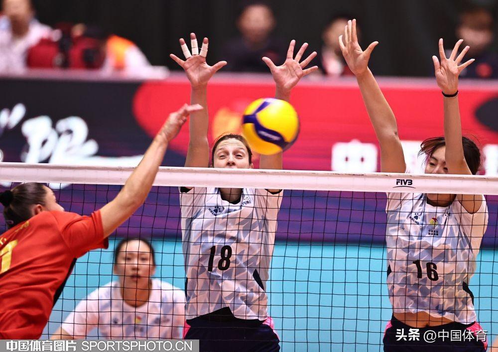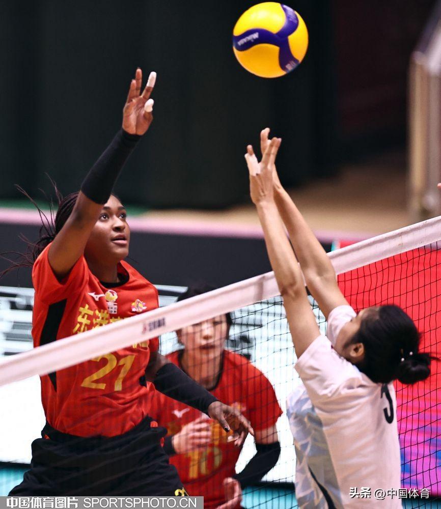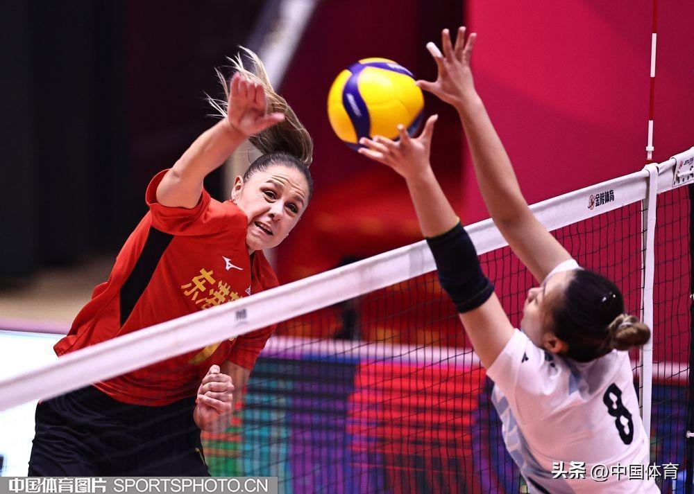 遼寧東港草莓隊吉內裏(右)和孫小軒雙人攔網