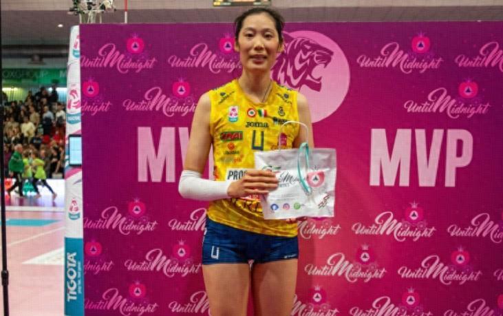 朱婷在效力新東家科內利亞諾的第二場比賽,就強勢拿到MVP,女排意甲聯賽焦點戰,科內利亞諾3比0橫掃瓦萊福里亞,來自中國的外援朱婷,發揮極其出色,17扣8中3攔2發,得到全隊最高的13分,榮膺單場MVP,實至名歸!