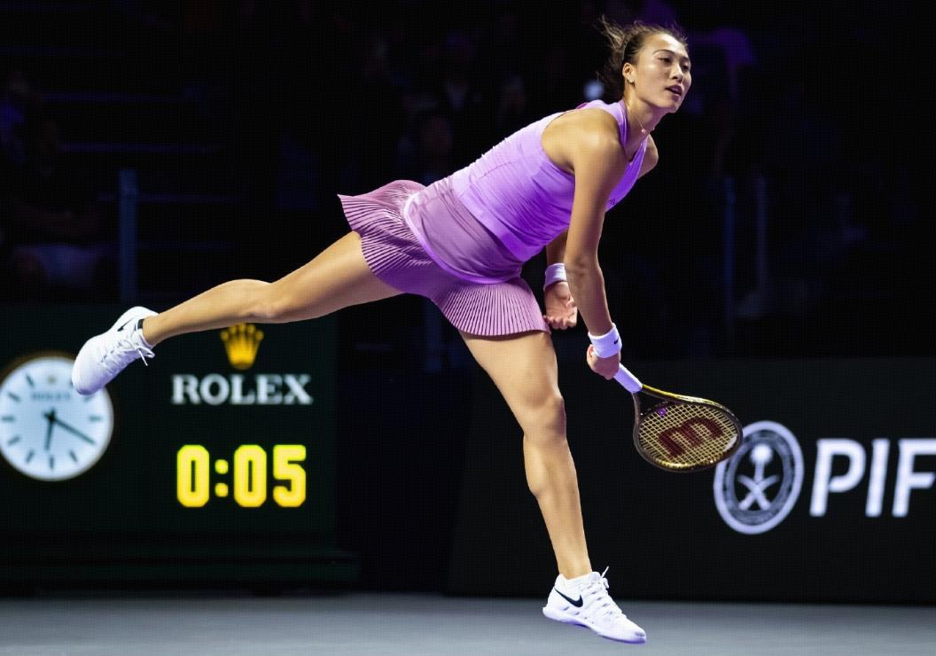 鄭欽文狀態回暖,一波強勢破發,5比1領先對手,最終,中國一姐乘勝追擊,再勝一盤,總比分2比1擊敗了世界排名第五的萊巴金娜,拿下年終總決賽首勝!