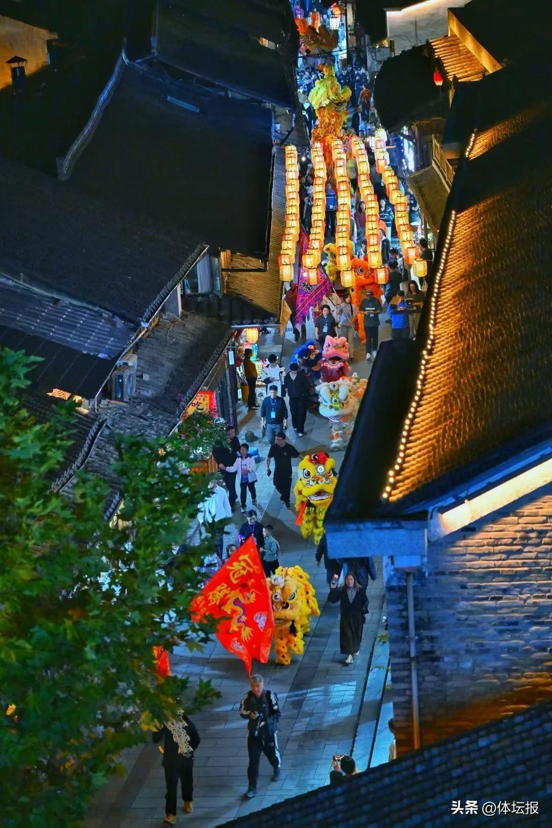 夜晚的古堰畫鄉更是熱鬧非凡。隨着夜幕降臨,舞龍舞獅隊伍整裝待發踩街活動正式開啓,27支“龍獅”隊伍,“大鬧”古堰畫鄉——從中心廣場依次出發,在雙蔭亭、古堰畫鄉藝術中心等畫鄉特色地標處,展開精彩有趣的互動,爲遊客和當地村民送去一場精彩的傳統文化盛宴。