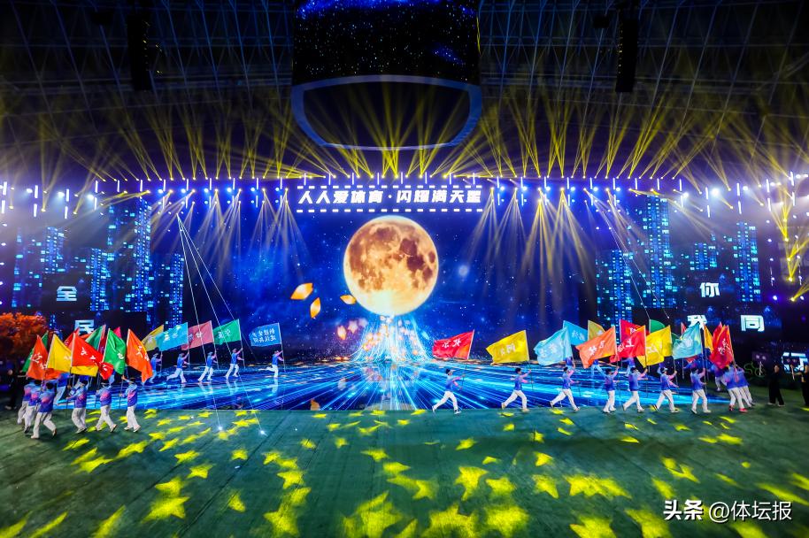 11月14日晚,在浙江杭州舉行的第一屆全國全民健身大賽閉幕式,以《人人愛體育·閃耀滿天星》爲主題,據羅可歌導演團隊介紹,演出將精彩展示與文體表演穿插、糅合,使閉幕式更具儀式感。閉幕式主舞臺以“智慧社區體育公園 ”作爲主題視覺形象,巧妙融入國球乒乓球的元素,將“國球進社區”“國球進公園”的理念具象化,通過“小切口”撬動全民“大健康”。
