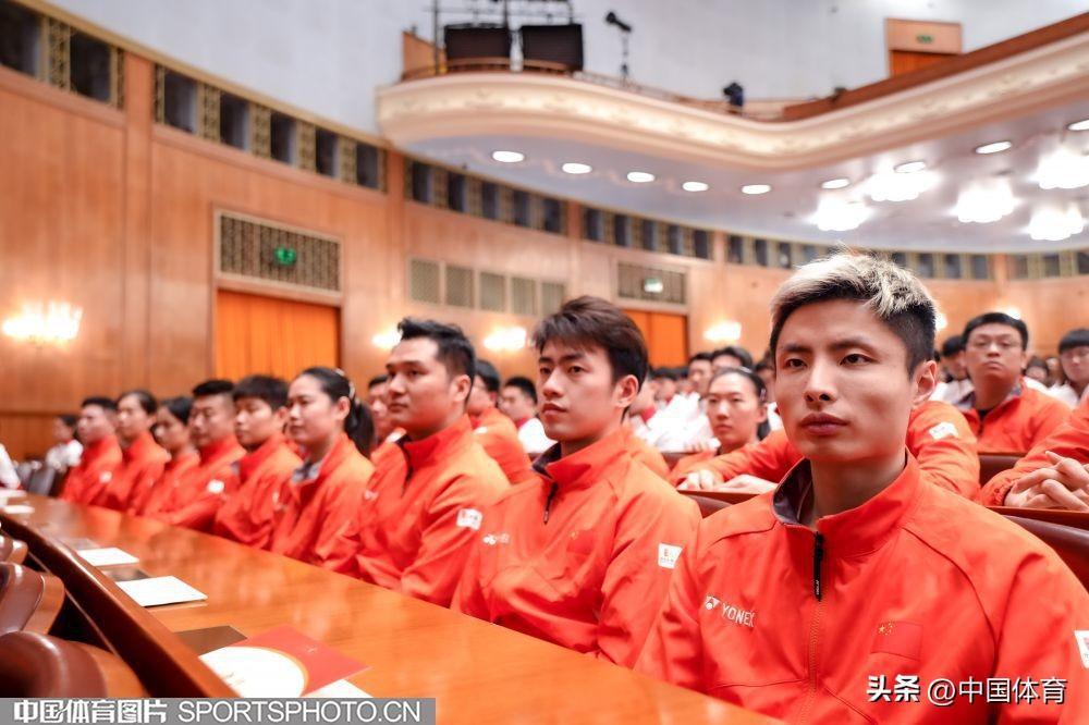 羽毛球世界冠軍石宇奇(右一)在報告會上