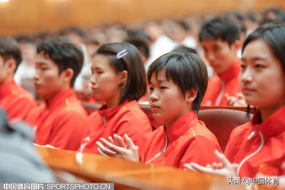 跳水奧運冠軍全紅嬋(右二)在報告會上