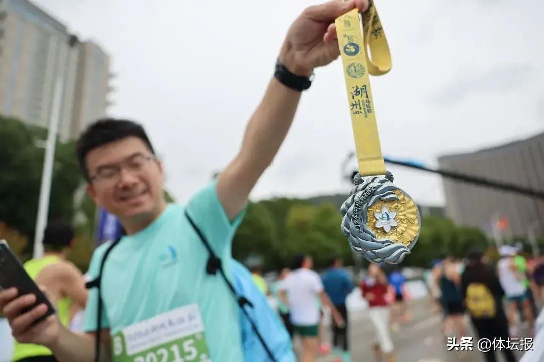 同樣古今輝映的還有此次“水拓絲帶•瓷飄清韻”完賽獎牌,正面是山水絲綢,附帶市花百合和市樹銀杏的元素,背面是城市圖景,展示了湖州深厚的人文底蘊和豐富的山水景緻。“賽前就很期待得到這塊獎牌,拿到手真的沉甸甸的,特別好看。”全馬跑友張輝說。