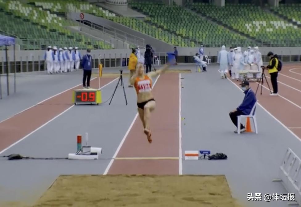 “這一跳可以!”龔璐穎奮力一躍,成績顯示6米42,站在場邊的帶訓教練張仁杰心裏的石頭落了地。