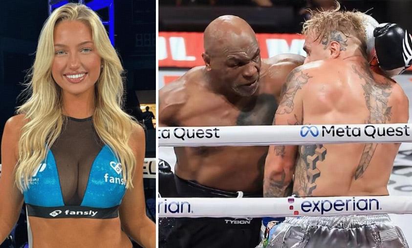 值得一提的是,這次拳賽還有一個意外出圈的人物,她就是站在擂臺上的舉牌女郎西德妮-托馬斯(Sydney Thomas),這個女孩金髮碧眼,長相甜美,身材也頗爲高挑,站在臺上非常搶鏡,鏡頭一旦掃過她,很難不引起注意。