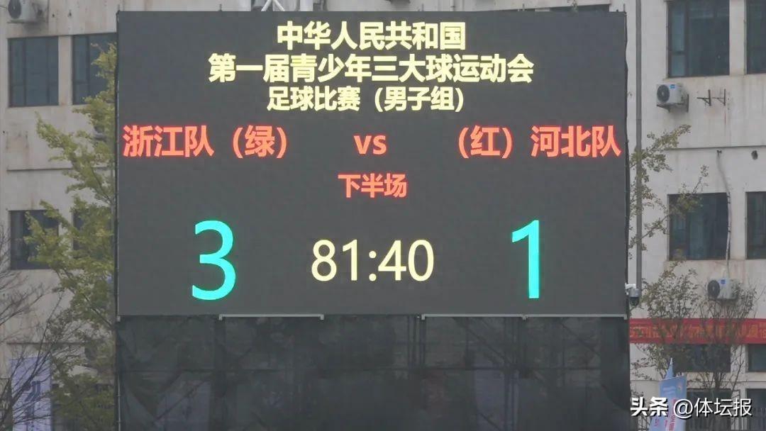 11月19日,第一屆全國青少年三大球運動會男足項目第二輪比賽,浙江隊3-1戰勝河北隊,取得兩連勝。根據賽事規程,浙江男足目前積6分,已提前鎖定小組第一,提前晉級1/4決賽。