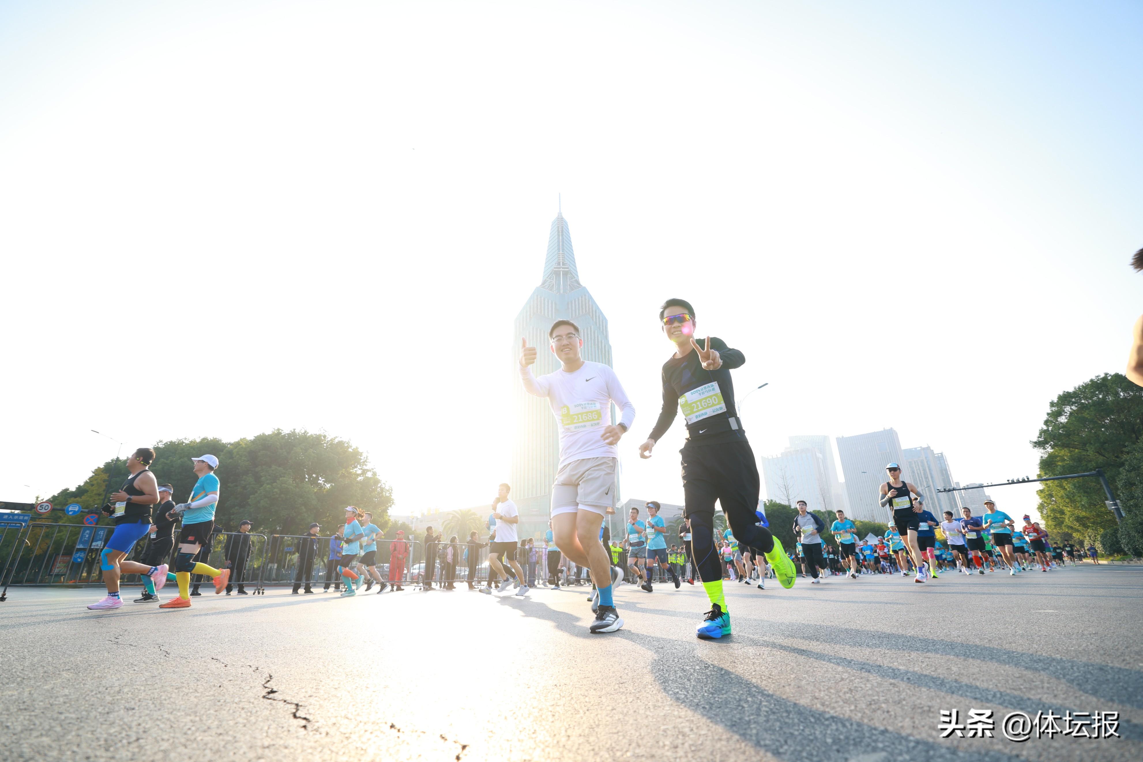 11月24日,7點30分,伴隨一聲響亮的鳴笛,2024諸暨西施半程馬拉松開跑。相較於往年,賽事由前三屆的“全馬”縮減爲“半馬”。組委會相關負責人介紹,半馬賽道的路況條件更好,沿途風景更美,“賽道僅設2個折返點、9個賽道切線,累計爬升僅37米,還是一條最適合體驗秋景的“銀杏大道”。”“我們以百分百的誠意、實打實的服務,讓走進諸暨的跑友充分感受到這座城市的溫情和禮遇。”諸暨市委常委、副市長高嵩說。