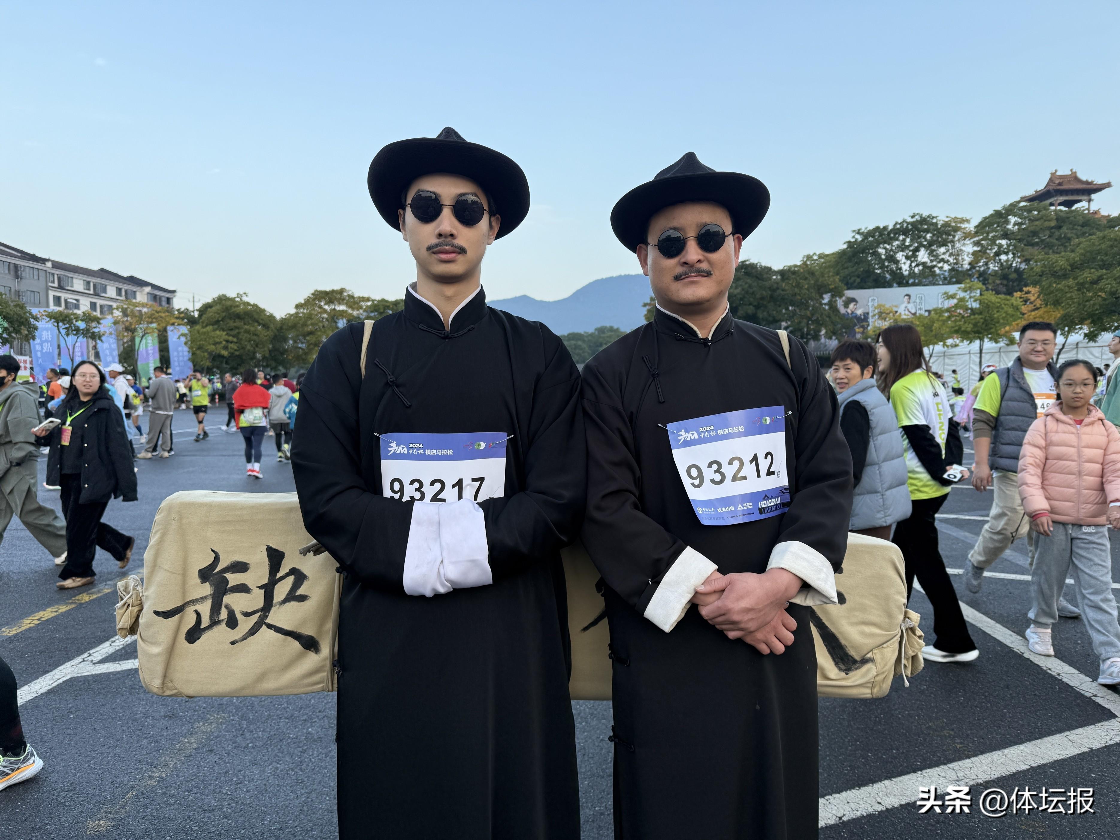 “上一次跑橫馬穿的是正常衣服,看別人角色扮演很有意思,所以我們這次也想玩點不一樣的。”從河南遠道而來的鄧先生和朋友扮成了“后羿射老虎”組合,短短几分鐘就有絡繹不絕的跑友來“求合影”,他們也成爲當之無愧的“顯眼包”。“我們主打的就是輕鬆、快樂。”比起成績,鄧先生更注重情緒價值,希望以獨一無二的造型爲自己和別人留下一段難忘的馬拉松之旅。