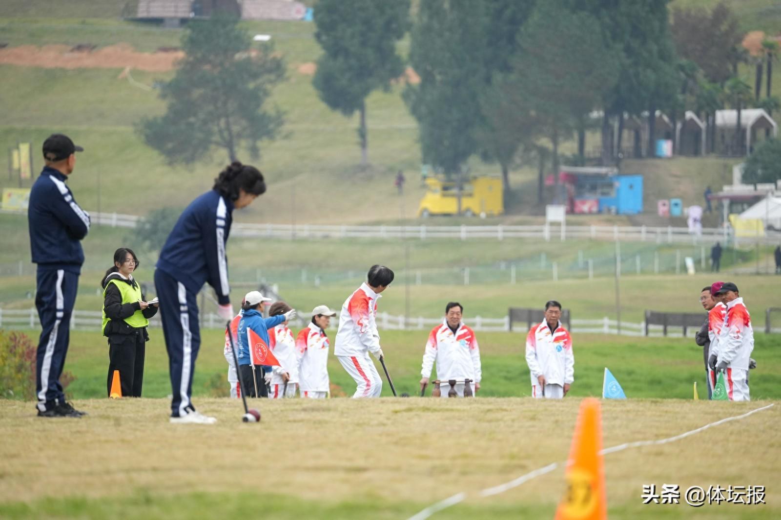 在風景如畫的風之谷景區,年齡從8歲到80歲的木球愛好者在綠地商共同揮杆,交流球技。同臺競逐單打、雙打、團體等各個獎項。