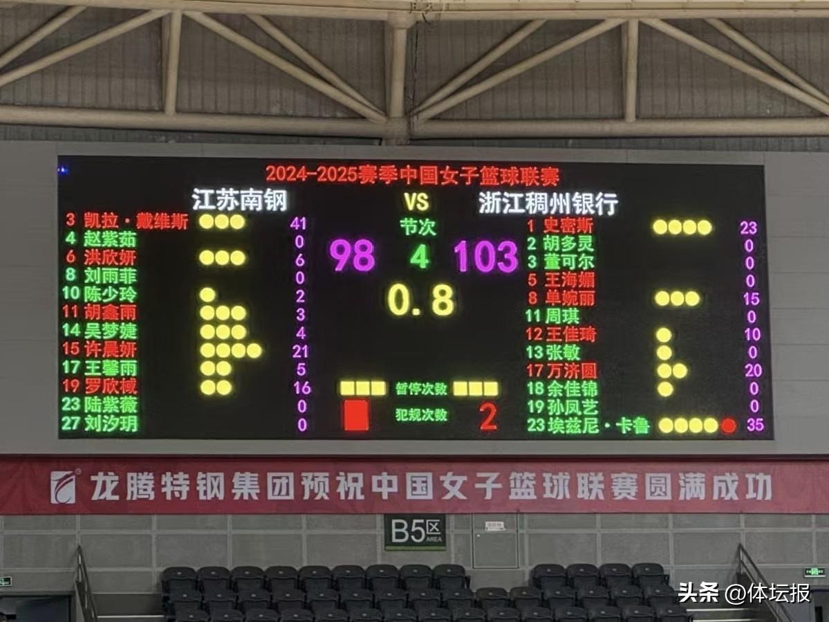 11月24日,2024-2025賽季WCBA聯賽第四輪,浙江稠州銀行女籃在客場與江蘇南鋼女籃展開對決,作爲頻繁交手的兩支球隊,雙方可謂知己知彼,此役浙江女籃最終頂住壓力以103-98戰勝對手。