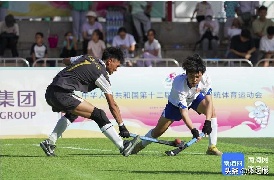 11月24日,運動會木球項目進入第二日賽程。圖爲浙江代表團(白衣)與青海代表團拼搶中。海報集團全媒體記者 李昊 攝