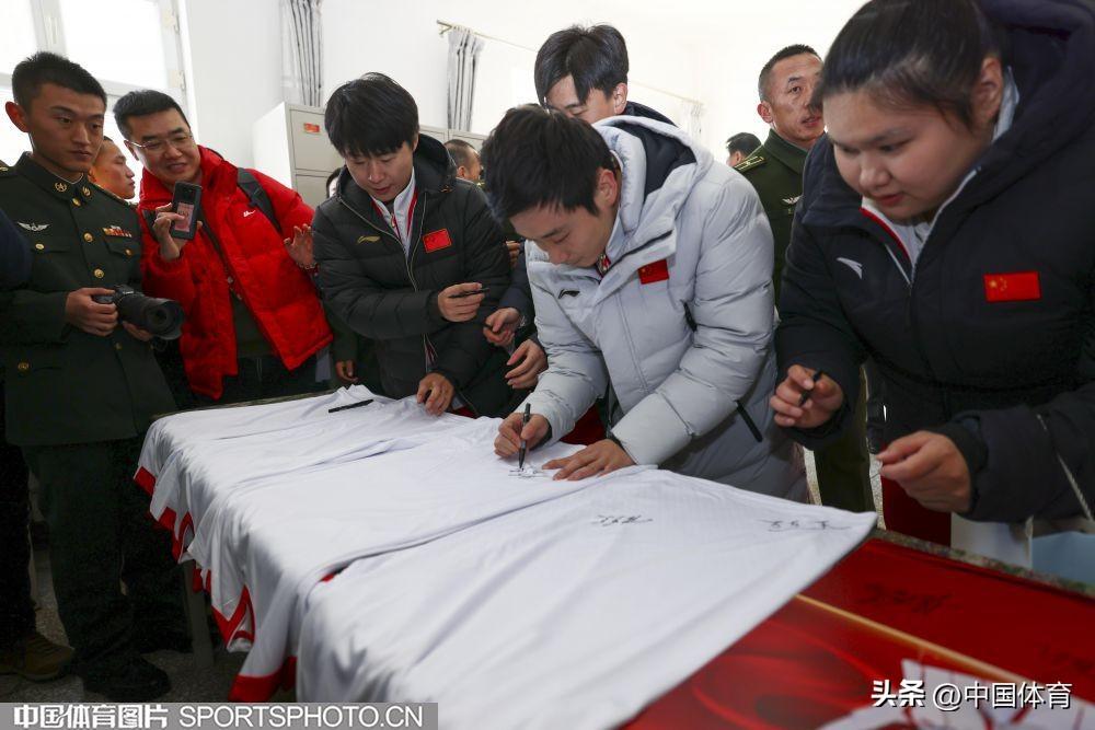 跳水奧運冠軍曹緣爲官兵們簽名留念