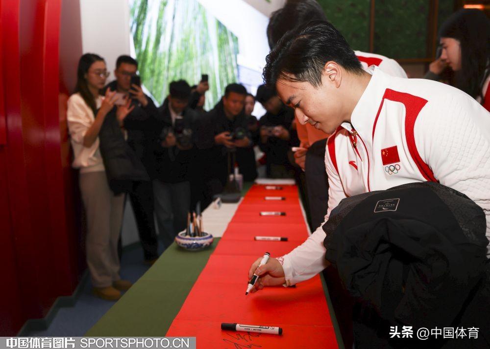 中國體育訊 11月27日,“決勝巴黎·綻放奧運——奧運冠軍面對面”巡迴宣講活動在新疆阿克蘇柯柯牙紀念館和紅旗坡豐慶園蘋果示範園舉行。(中國體育圖片 張昕 攝)柯柯牙紀念館活動現場體操奧運冠軍劉洋在柯柯牙紀念館活動中籤名留念柯柯牙紀念館工作人員爲小輪車奧運冠軍鄧雅文獻圍巾游泳奧運冠軍潘展樂(右)在紅旗坡豐慶園蘋果示範園活動中